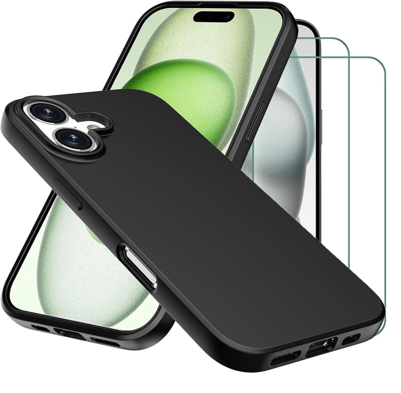 Apple iPhone 16 / 16 Pro / Plus Pro Max Case Black Gel Phone Cover & Screen Protector