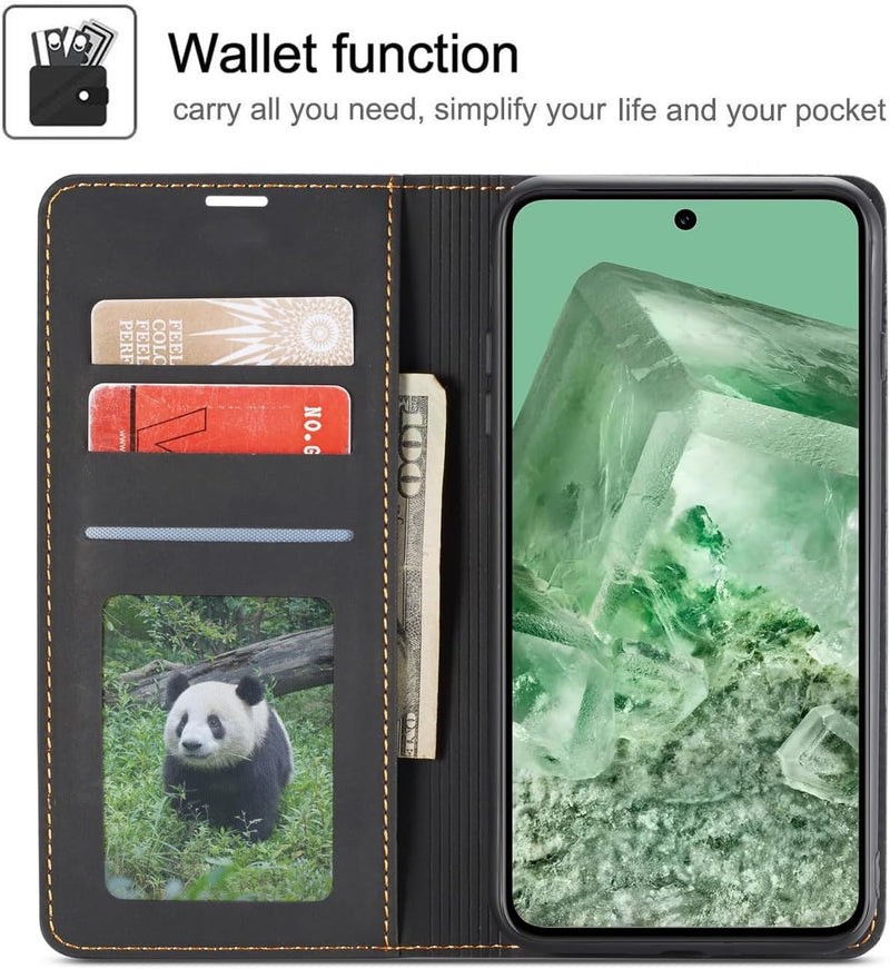 - Secure Magnetic Flip Closure: The magnetic closure design ensures your phone stays securely contained within the case. It offers a sleek, minimalist look without visible clasps or buckles, providing reliable protection without interfering with your credit cards.