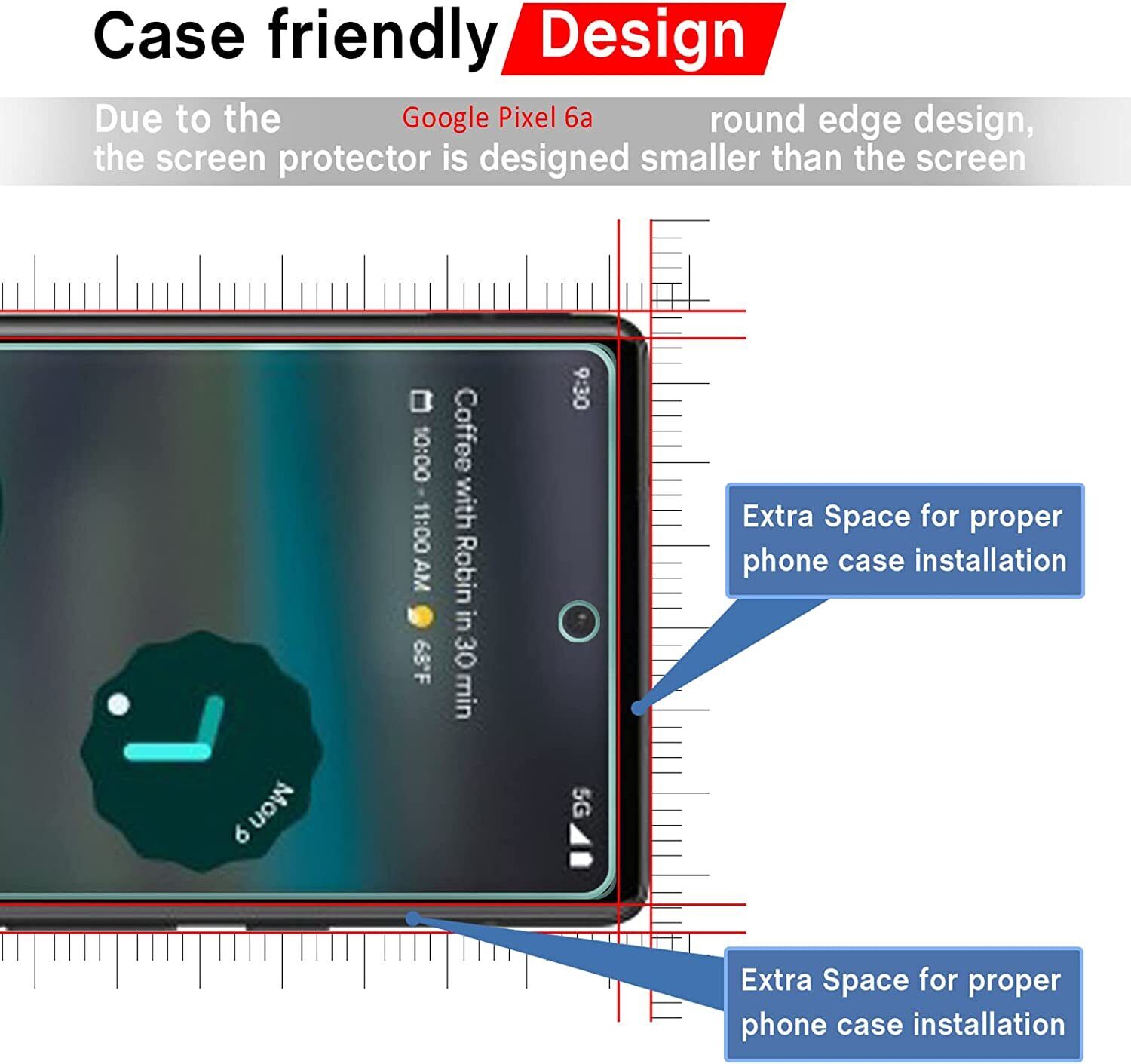 Google Pixel 6a 5G Tempered Glass Screen Protector Case Friendly