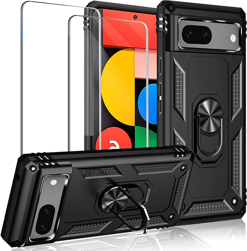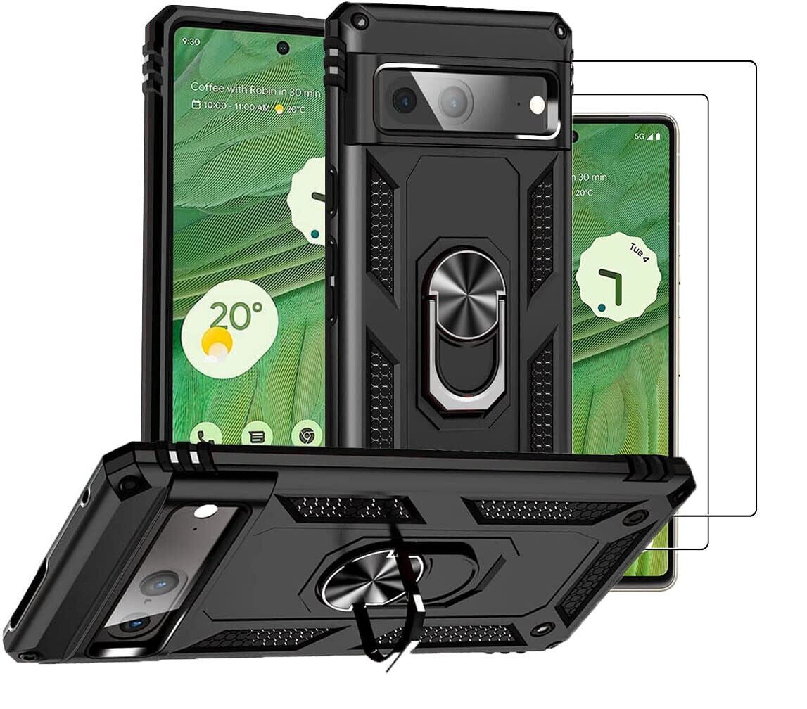 Google Pixel 7 Case Kickstand Ring Cover & Glass Screen Protector