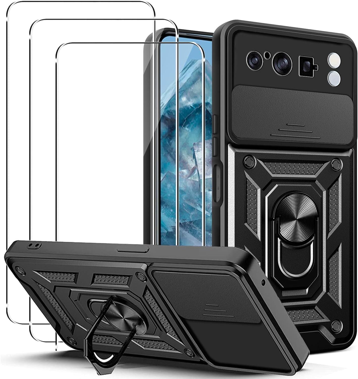 Google Pixel 8 / 8 pro Case Shockproof Ring Stand Phone Camera Lens Cover & Screen Protector