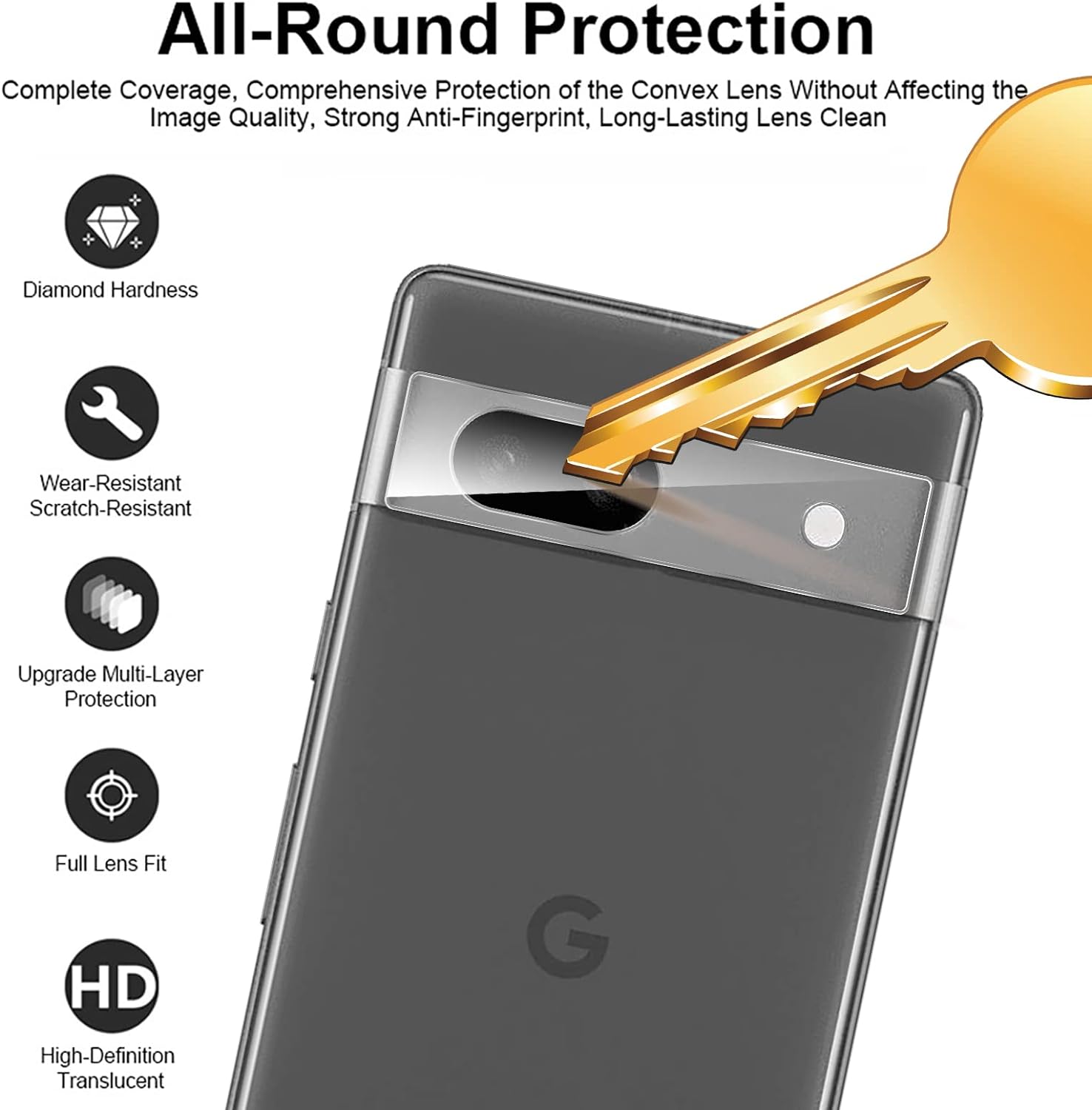 - ANTI-SCRATCH:The material of glass has good resistance. Upgraded scratch-resistant coatings protect the Raised camera Lens from unwanted scuffs and scratches by knife, keys and some other hard objects.