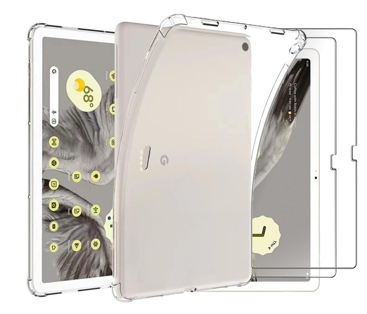 Google Pixel Tablet Case Clear Shockproof Cover Glass Screen Protector