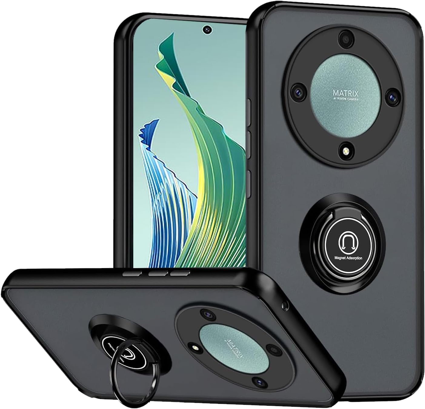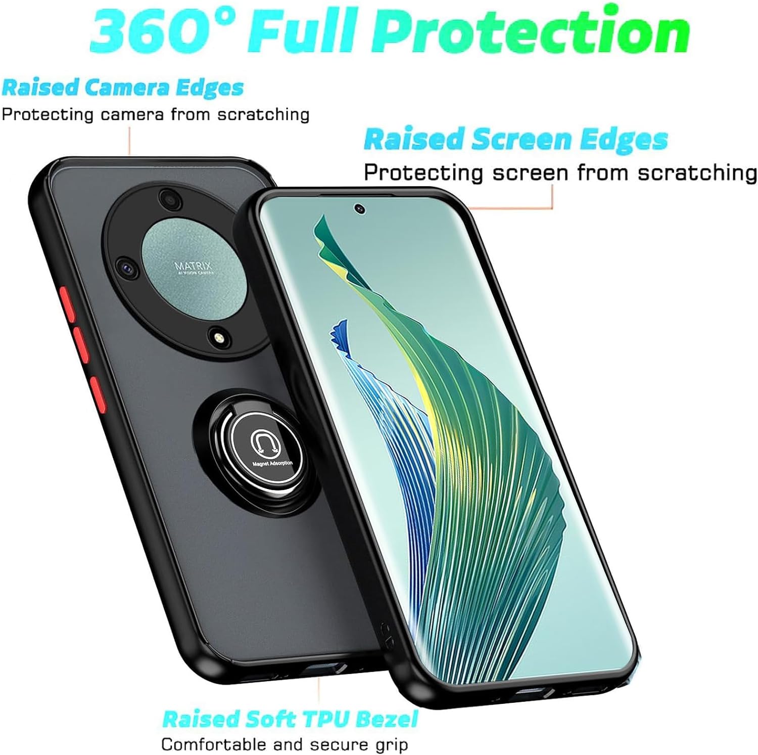 ✅ ·【Magnetic Rotated Ring Holder】 Integrated ring holder kickstand can be rotated 360° horizontally. It fits comfortably over your finger, to prevent the phone from breaking. Hands-free during watching/meeting/learning, etc. Metal magnetic sheet can be directly adsorbed to the magnetic car fixing frame.