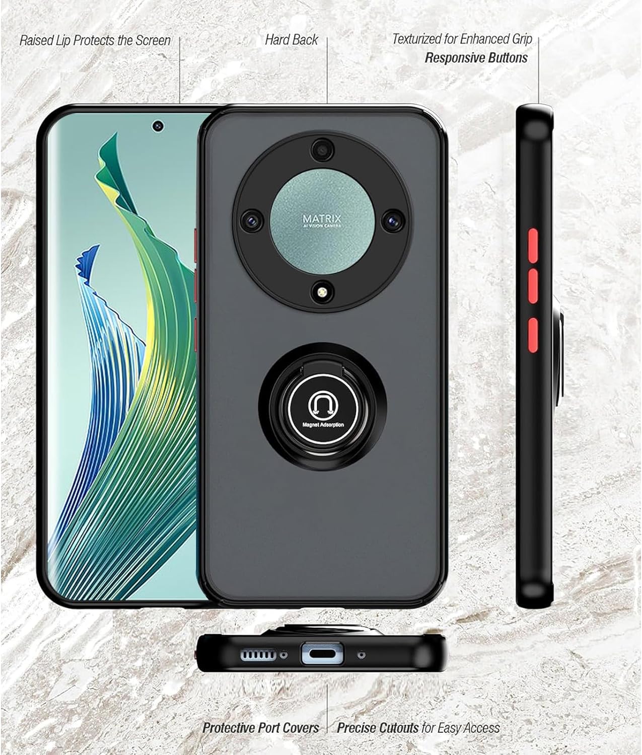 Honor Magic 5 Lite Case Kickstand Shockproof Cover Heavy Duty & Screen Protector