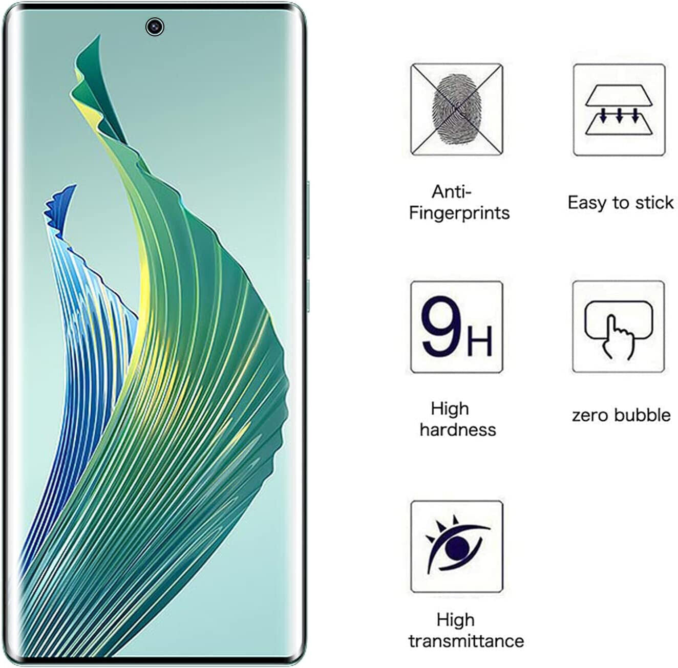 FEATURES: Curved Screen Coverage,Full Screen Coverage,9H Hardness,Anti-Scratch,Anti-Shatter