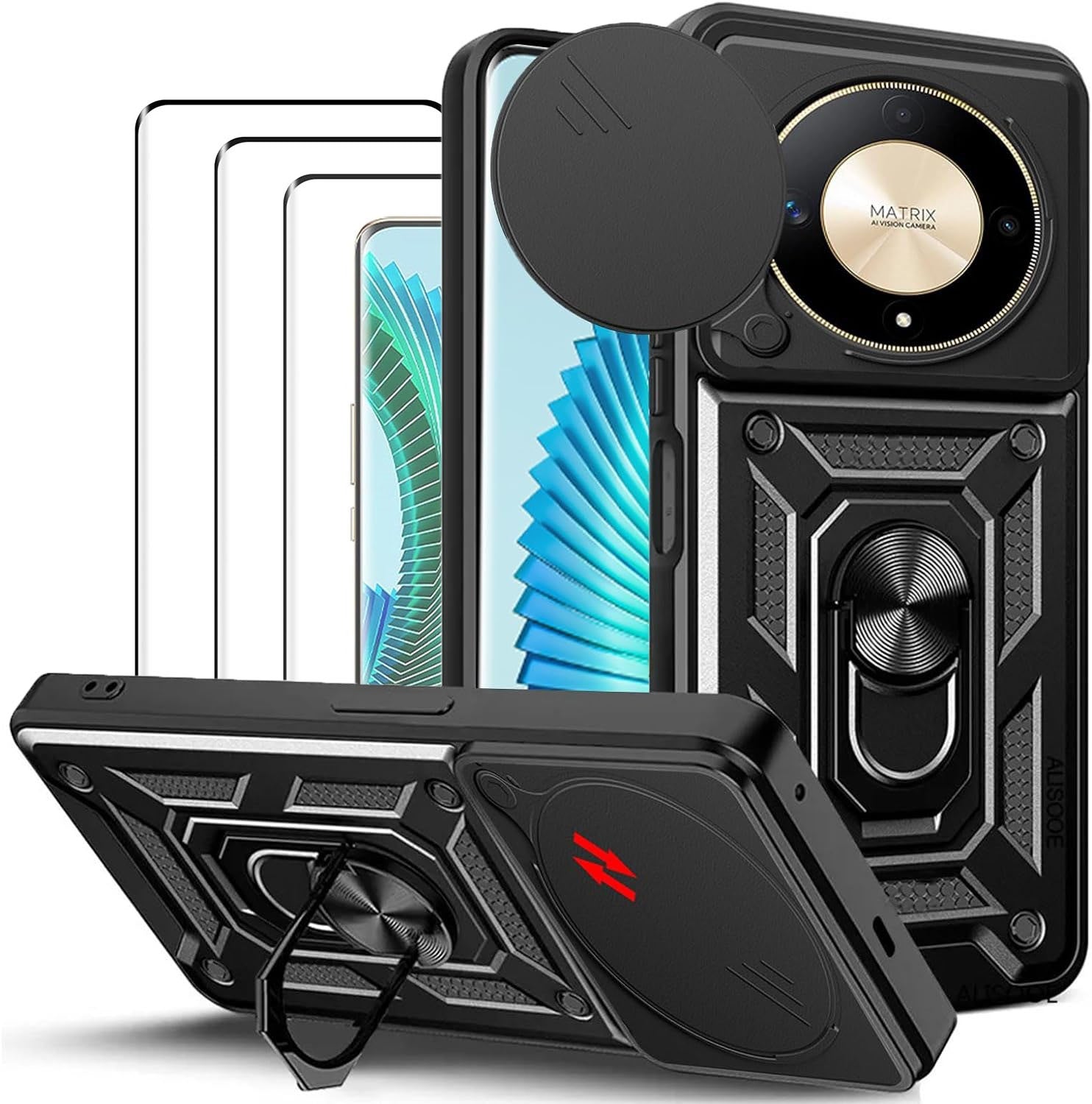 Honor Magic 6 Lite 5G Case Shockproof Ring Stand Phone Camera Lens Cover & Screen Protector
