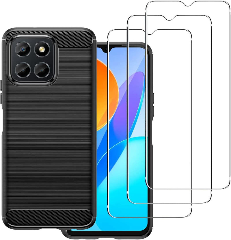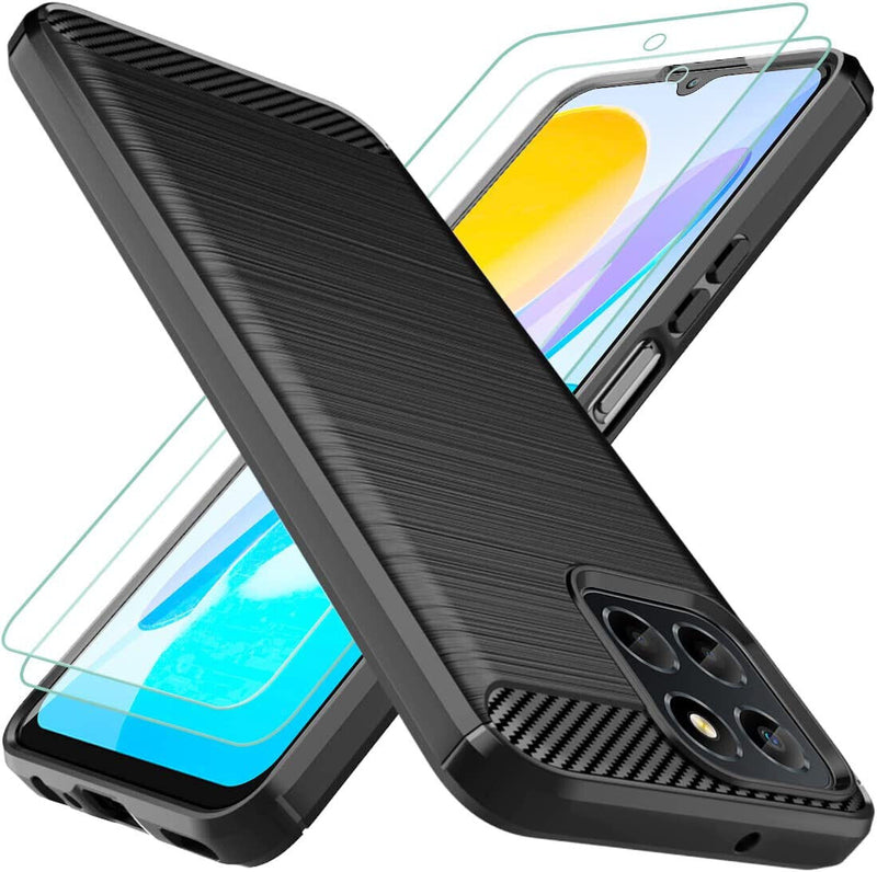 Honor X6 Case Carbon Fibre Cover & Glass Screen Protector
