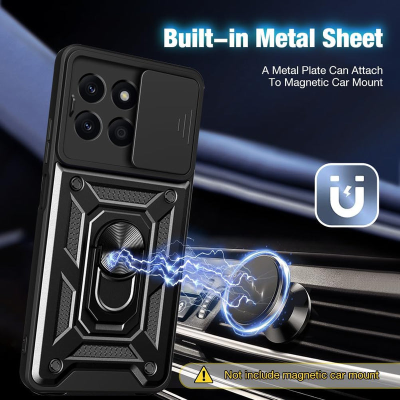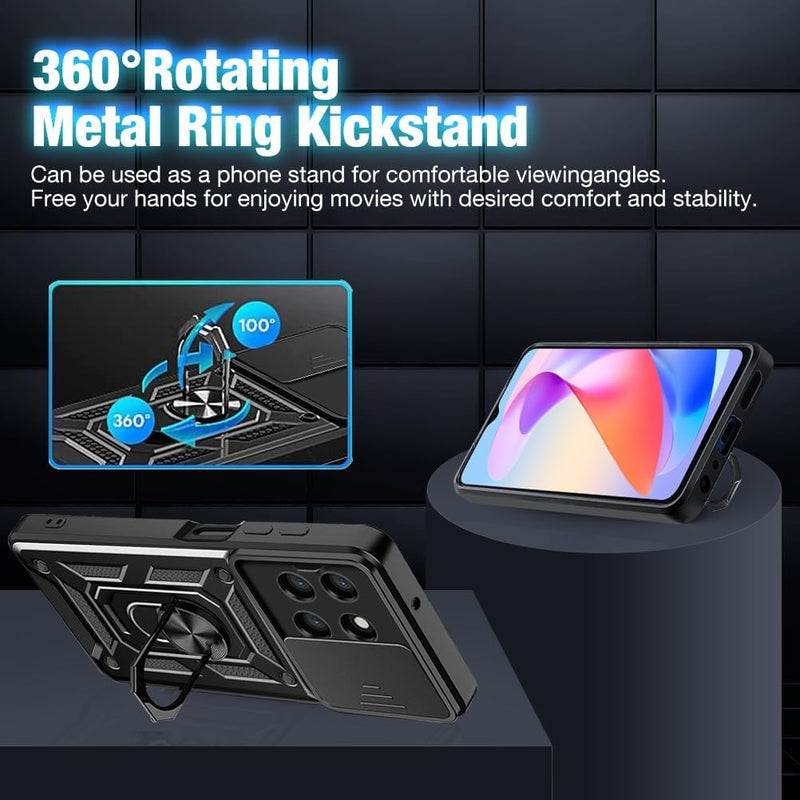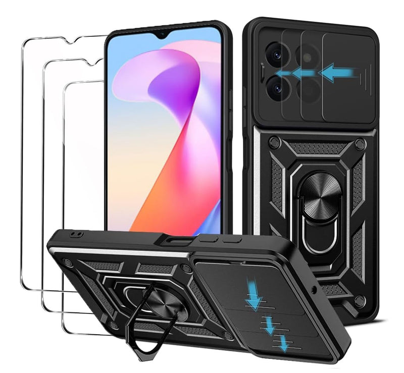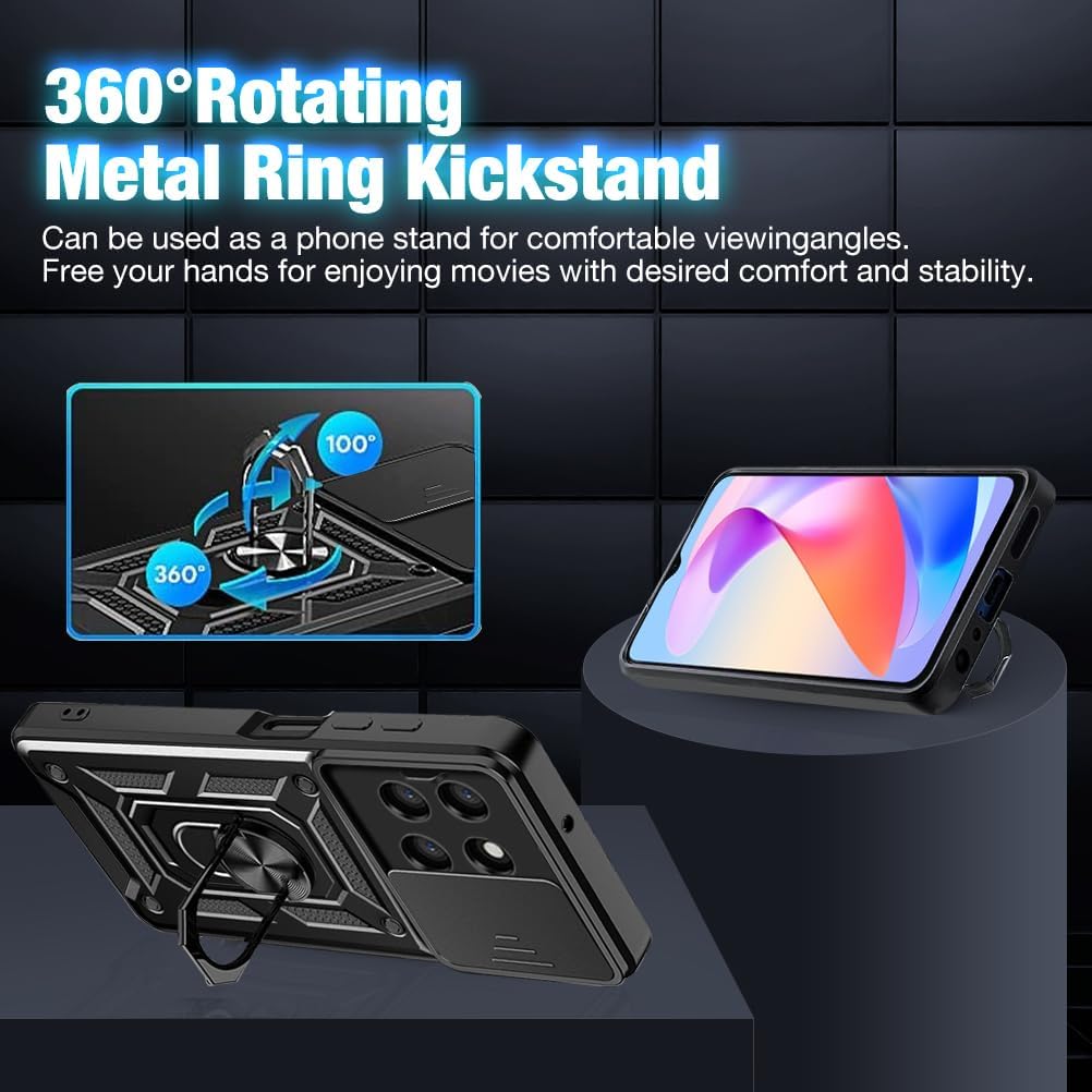 Honor X6a Case Shockproof Ring Stand Phone Camera Lens Cover & Screen Protector