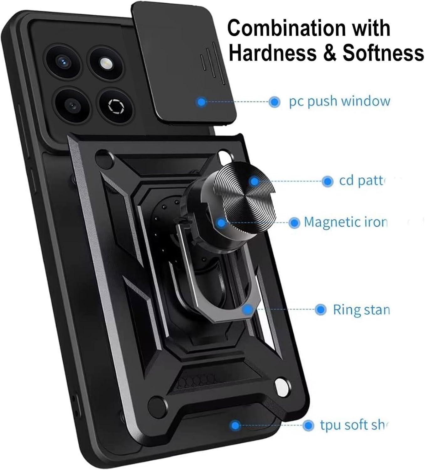 Honor X6c Case Shockproof Ring Stand Phone Camera Lens Cover