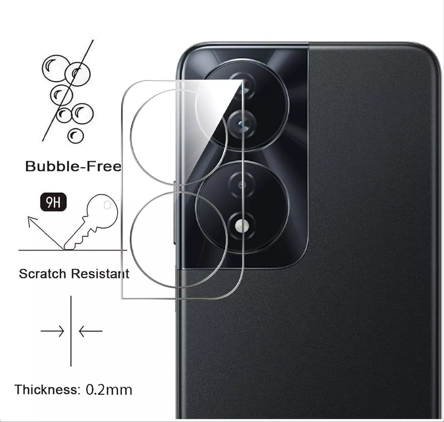 - ANTI-SCRATCH:The material of glass has good resistance. Upgraded scratch-resistant coatings protect the Raised camera Lens from unwanted scuffs and scratches by knife, keys and some other hard objects.