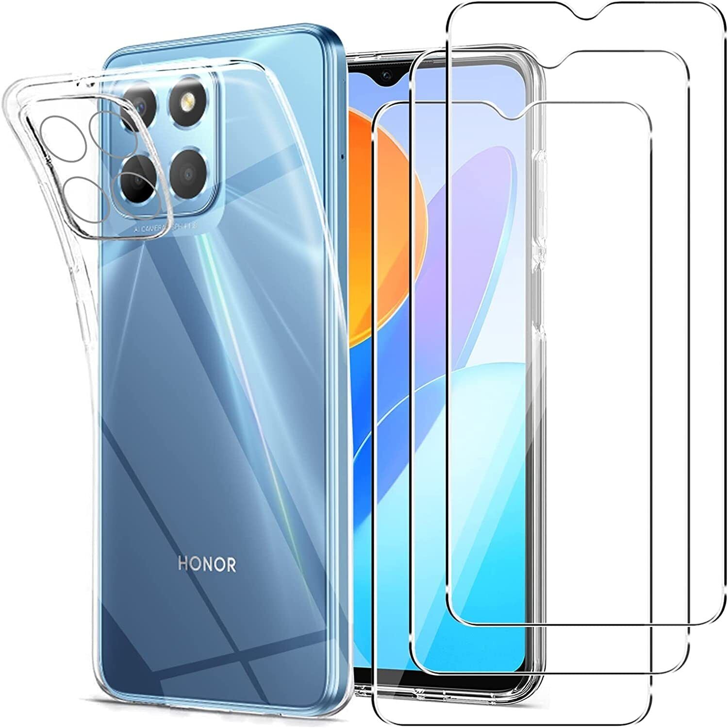 Honor X8 4G / 5G Case, Slim Silicone Clear Gel Cover Glass Screen Protector