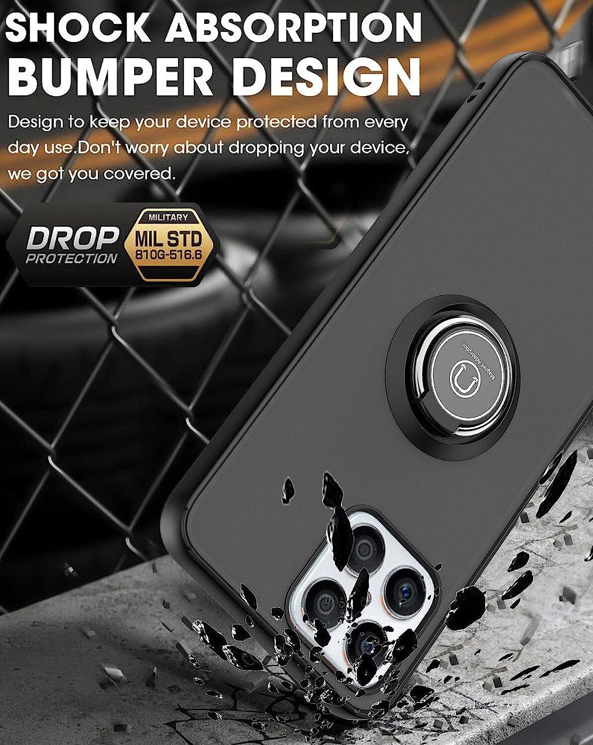 - 【Magnetic Rotated Ring Holder】 Integrated ring holder kickstand can be rotated 360° horizontally. It fits comfortably over your finger, to prevent the phone from breaking. Hands-free during watching/meeting/learning, etc. Metal magnetic sheet can be directly adsorbed to the magnetic car fixing frame.