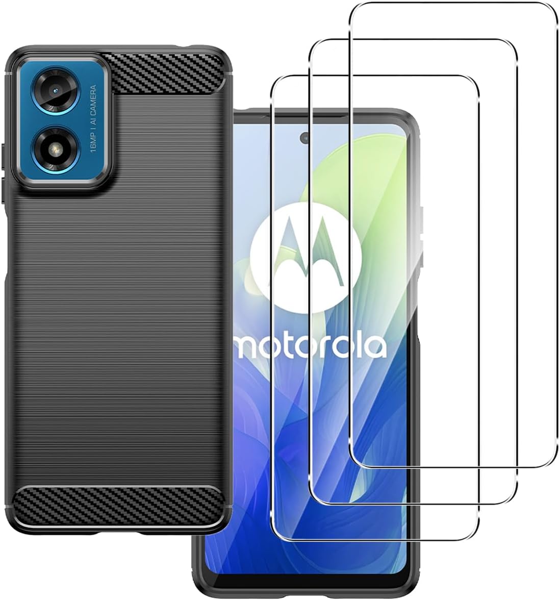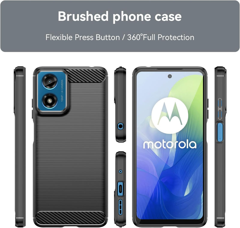 Motorola Moto E14 Case Carbon Fibre Phone Cover + Screen Protector