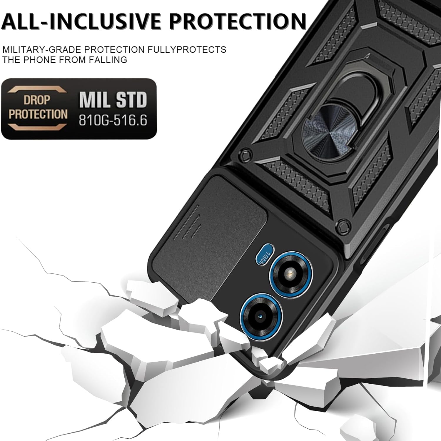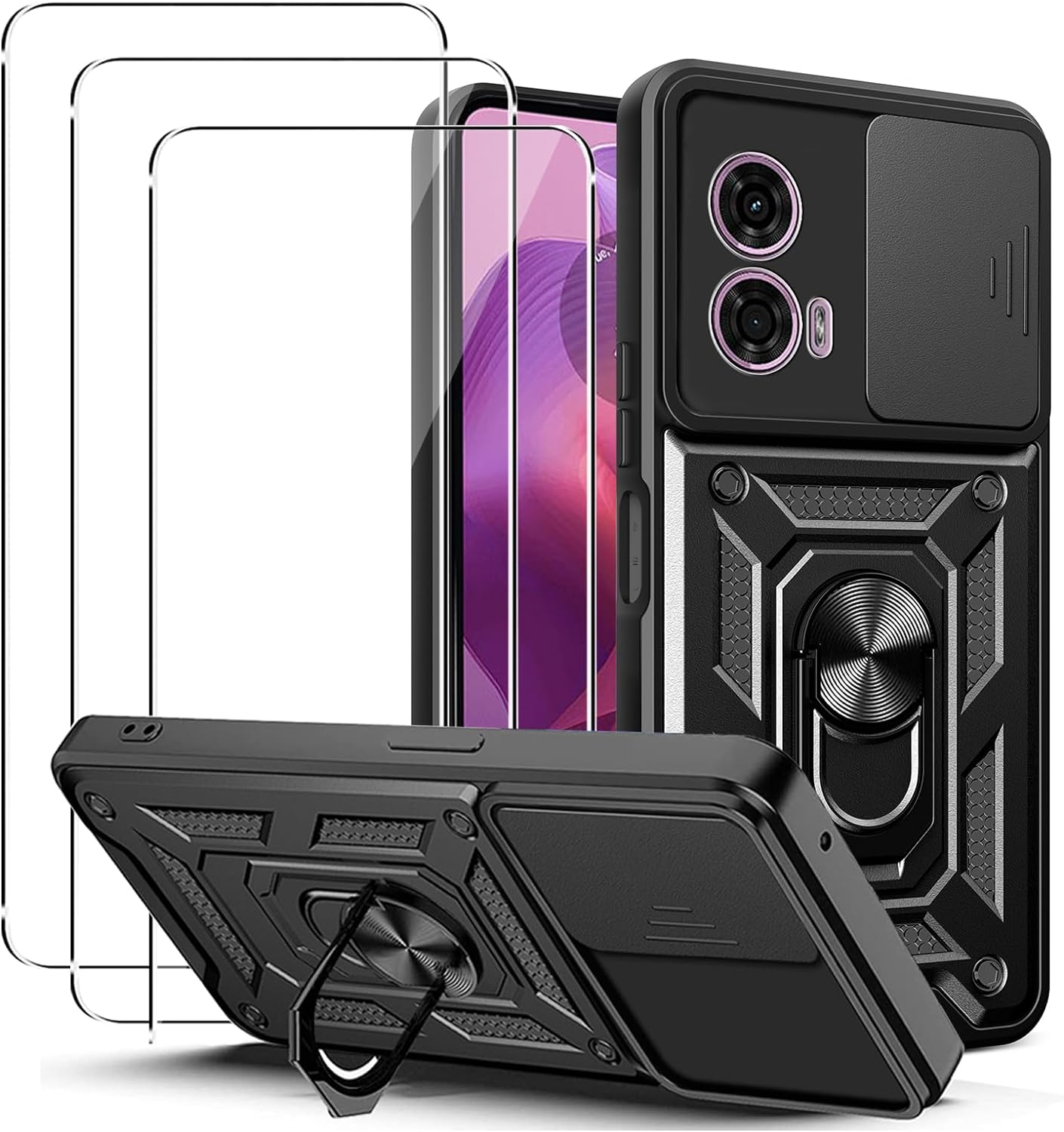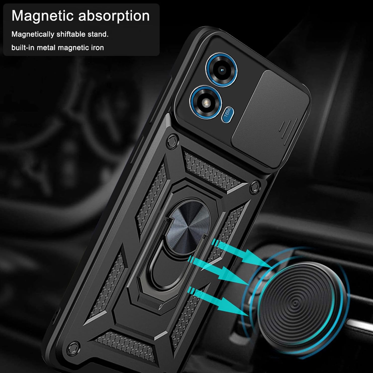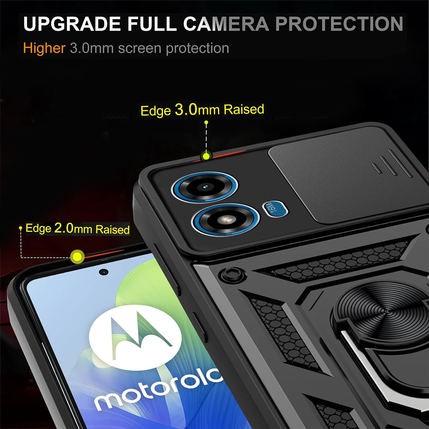 Motorola Moto E14 Case Shockproof Ring Stand Phone Camera Lens Cover & Screen Protector