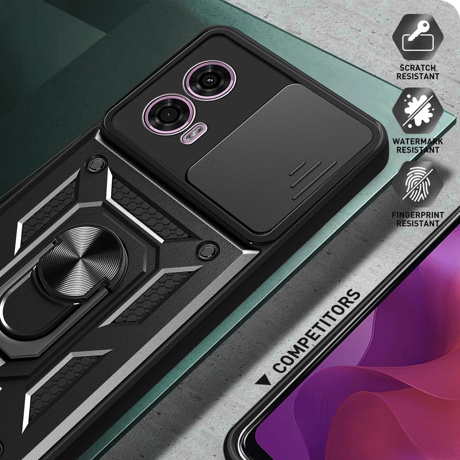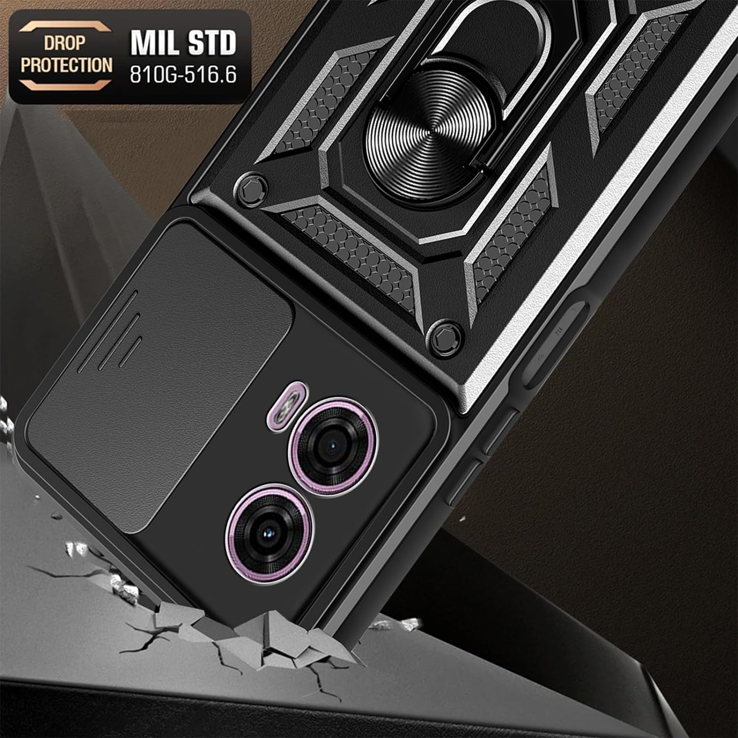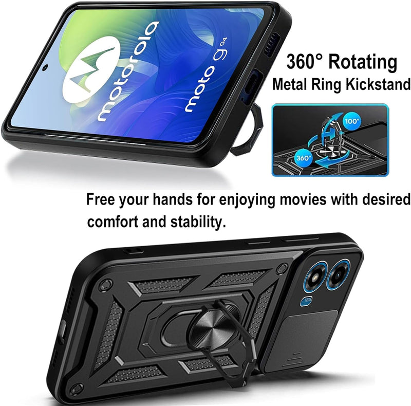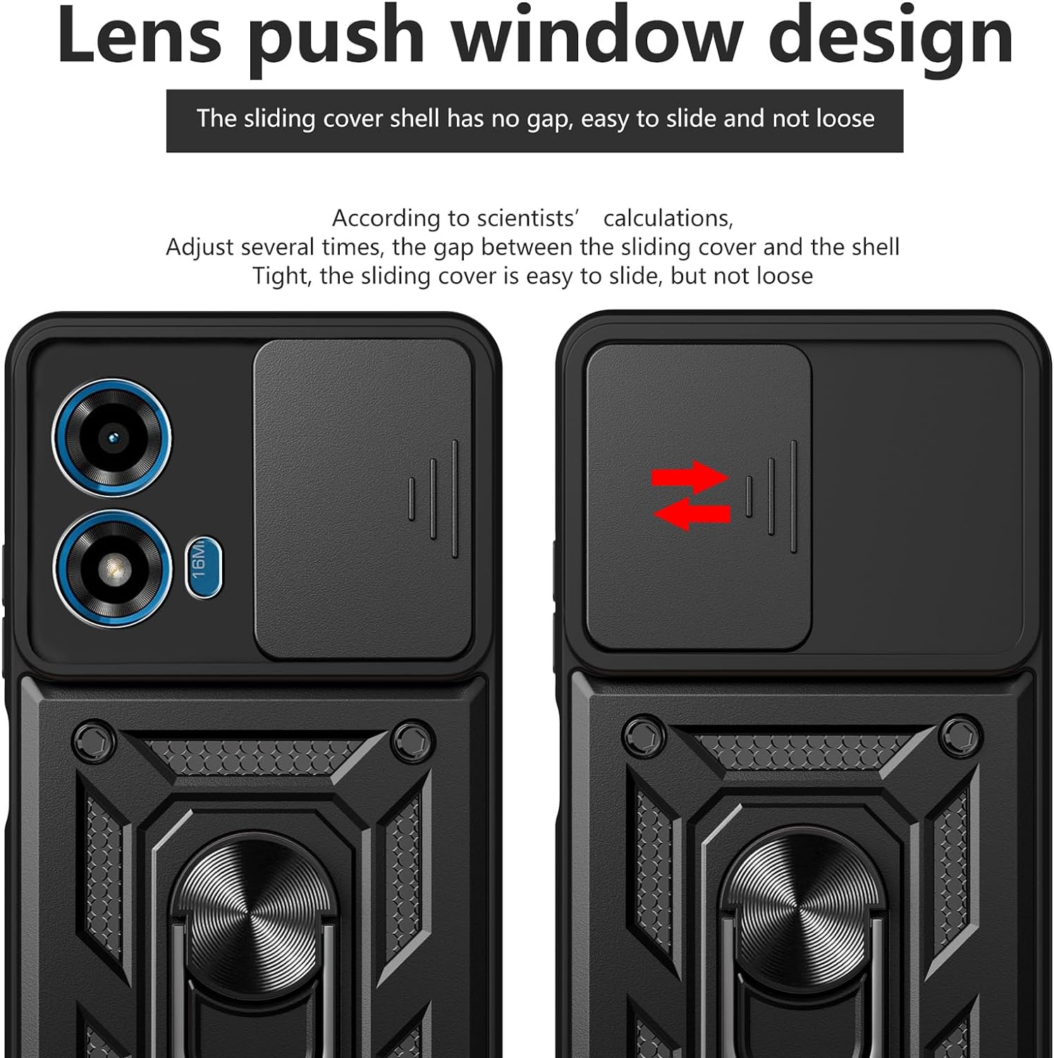 Motorola Moto E14 Case Shockproof Ring Stand Phone Camera Lens Cover & Screen Protector