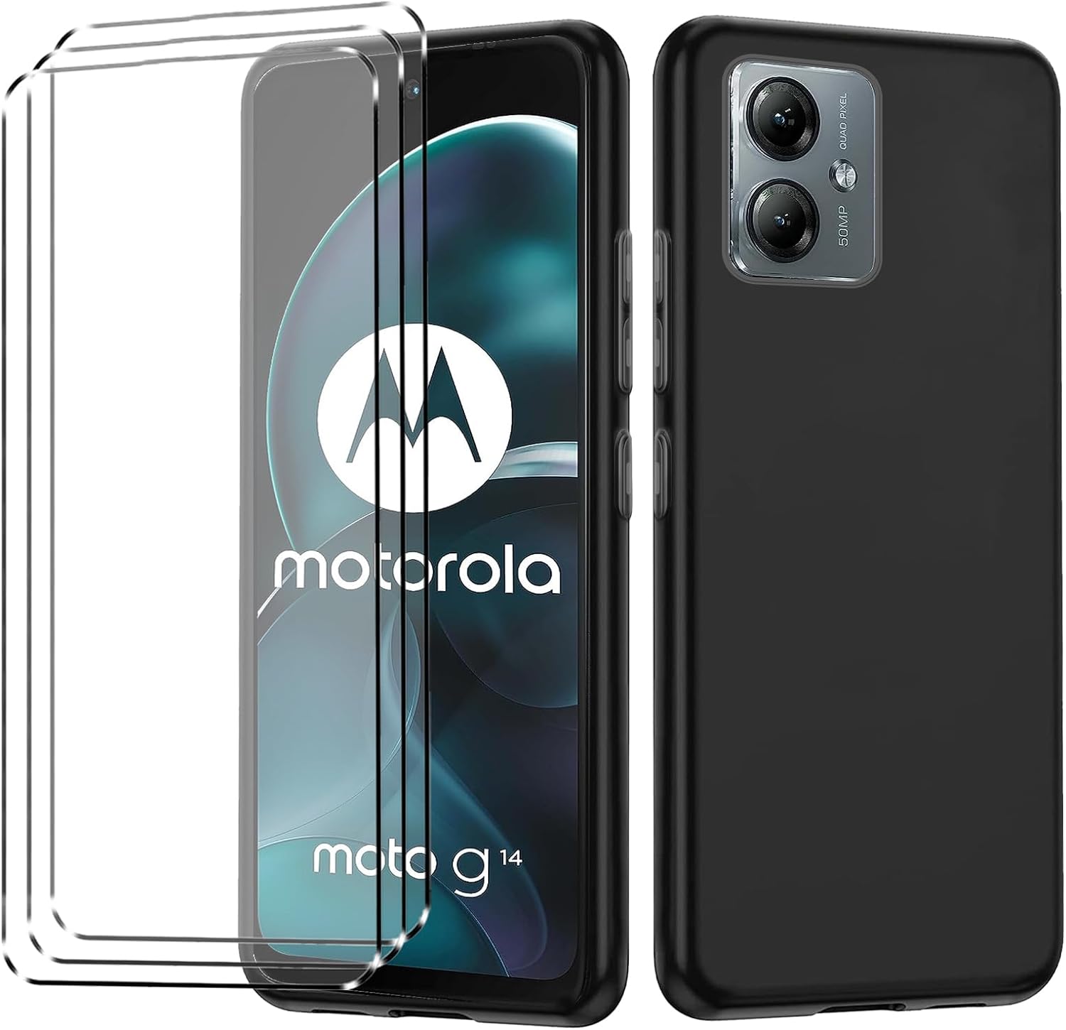 Motorola Moto G14 Case Black Gel Phone Cover & Screen Protector
