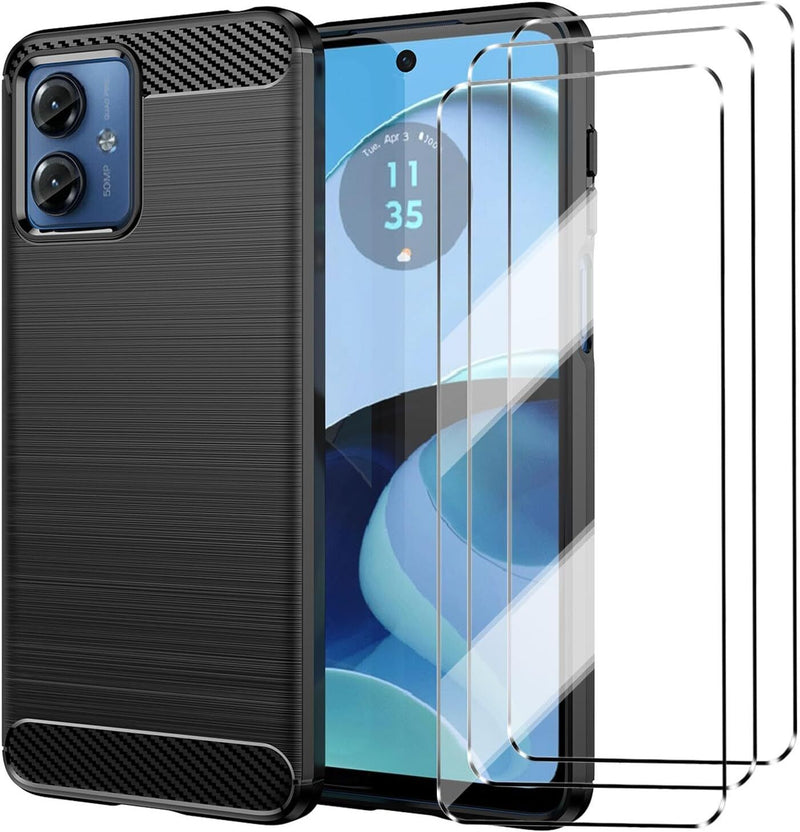 Motorola Moto G14 Case Carbon Fibre Phone Cover & Screen Protector