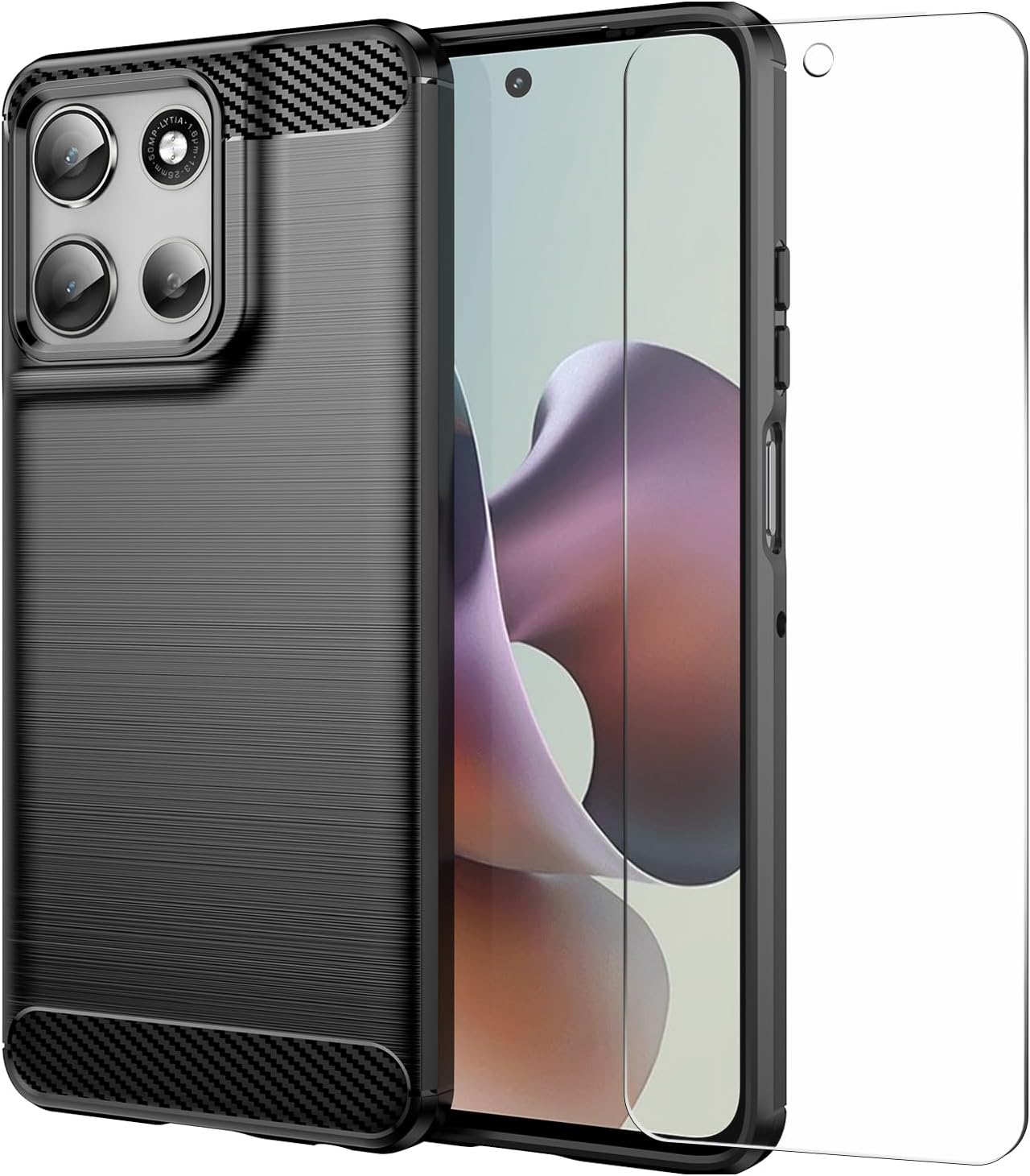 Motorola Moto G56 Case Carbon Fibre Phone Cover + Screen Protector