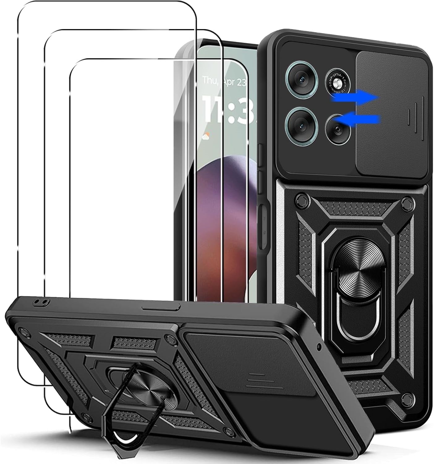 Motorola Moto G56 Case Shockproof Ring Stand Phone Cover & Screen Protector