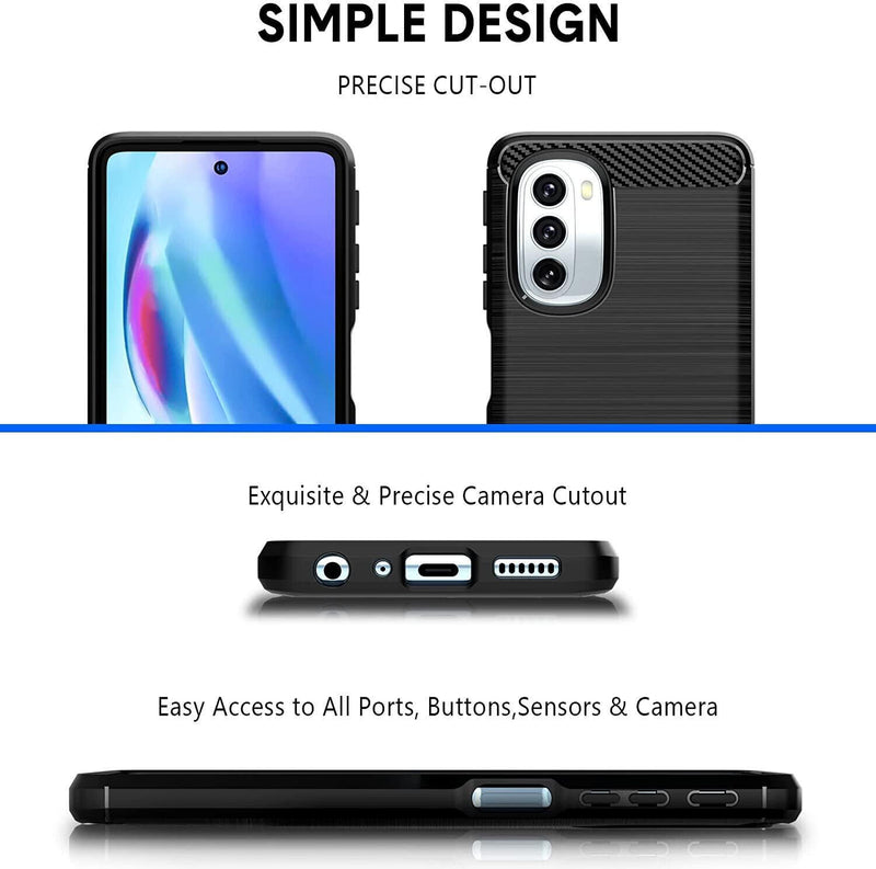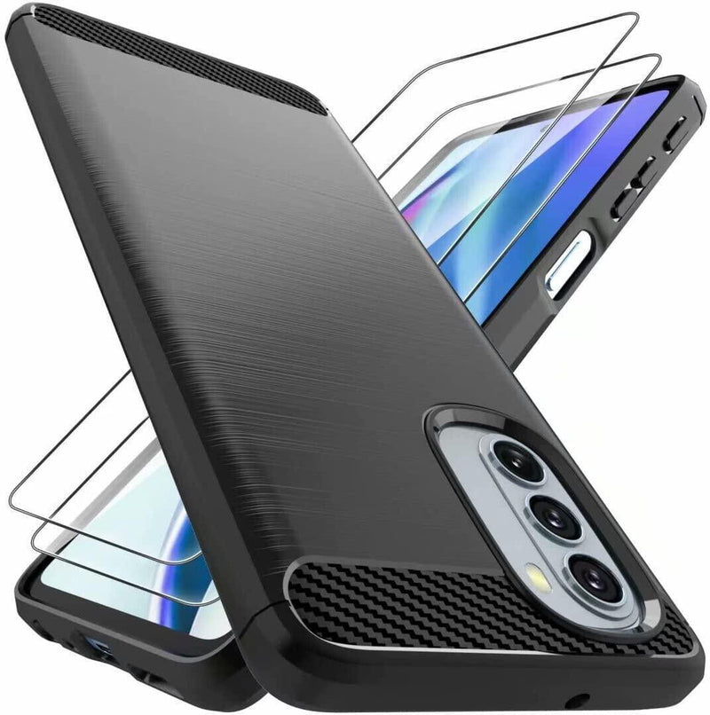 Motorola Moto G62 5G Case Carbon Fibre Cover & Glass Screen Protector