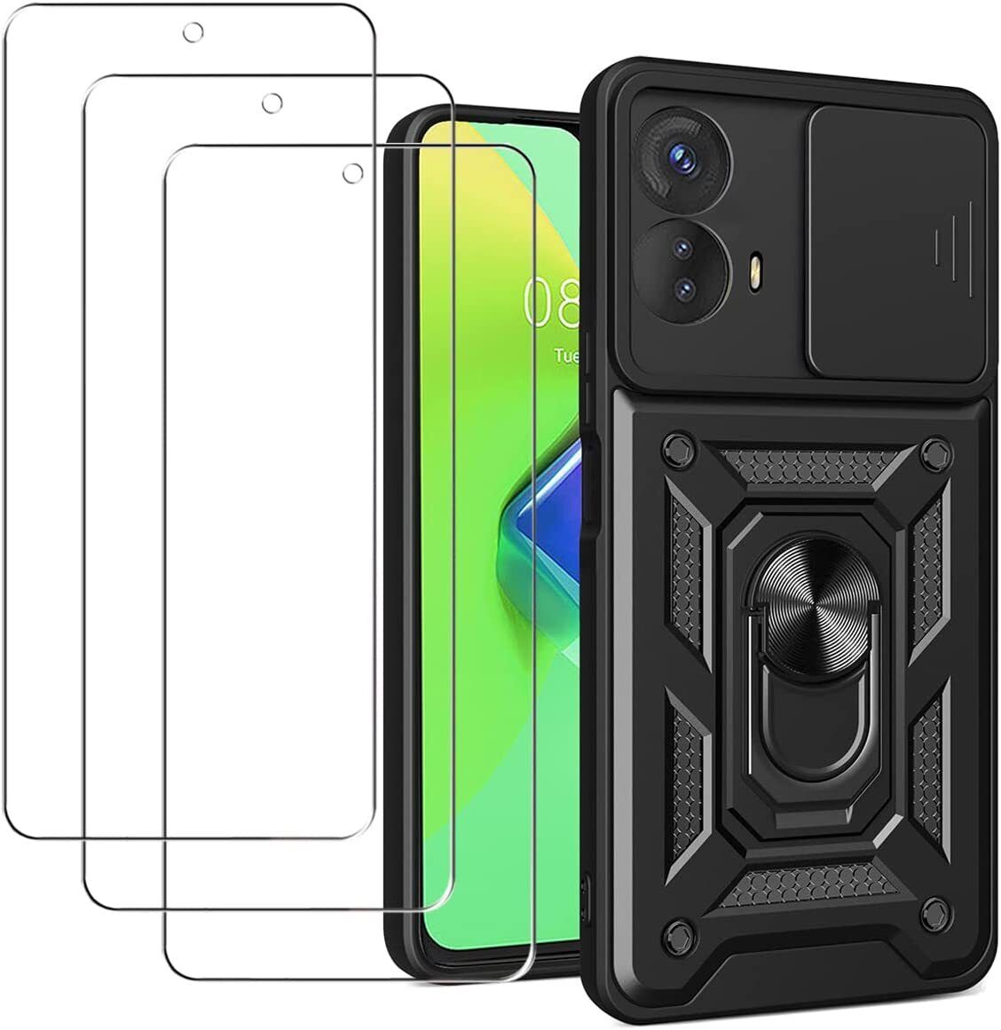 Motorola Moto G73 5G Case Shockproof Ring Stand Phone Camera Lens Cover & Screen Protector