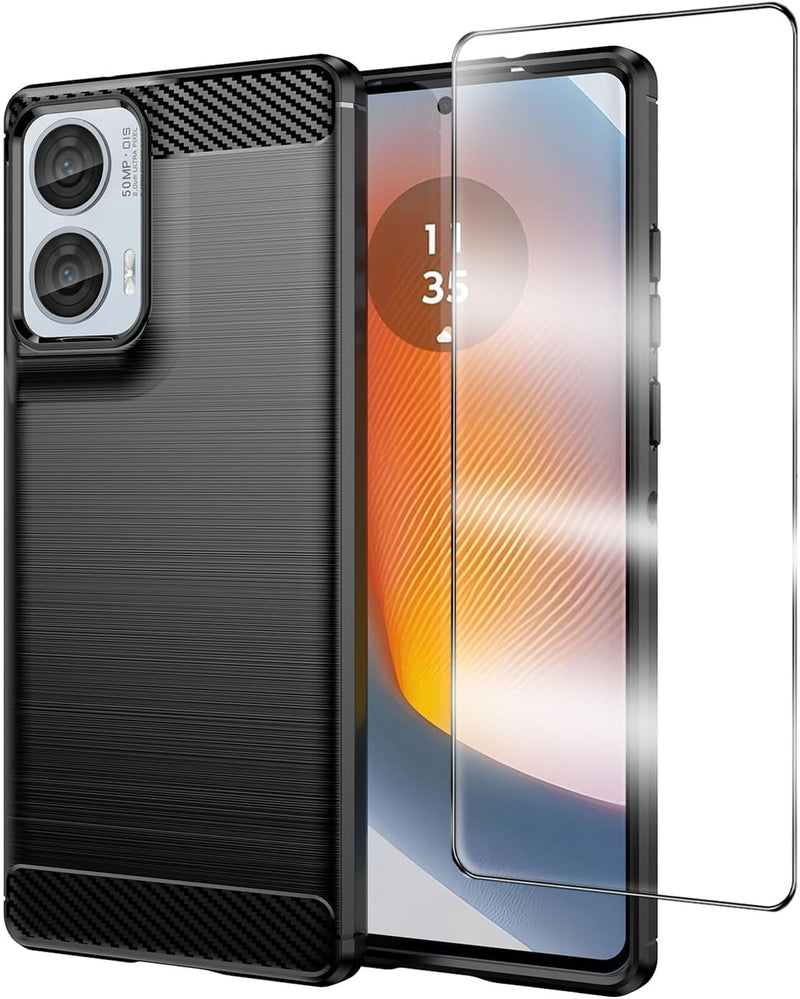 Motorola Moto G85 Case Carbon Fibre Phone Cover + Screen Protector