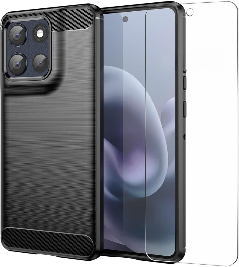 Motorola Moto G86 Case Carbon Fibre Phone Cover + Screen Protector
