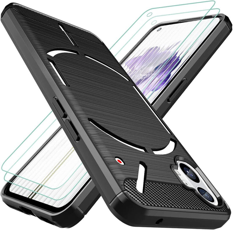 Nothing Phone (1) Case Carbon Fibre Cover & Glass Screen Protector