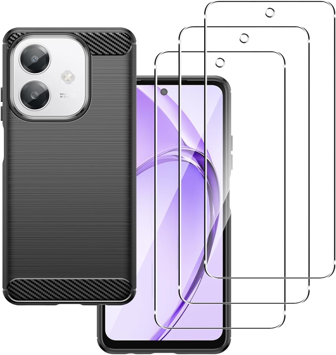 Oppo A60 5G A40 4G Case Carbon Fibre Phone Cover + Screen Protector