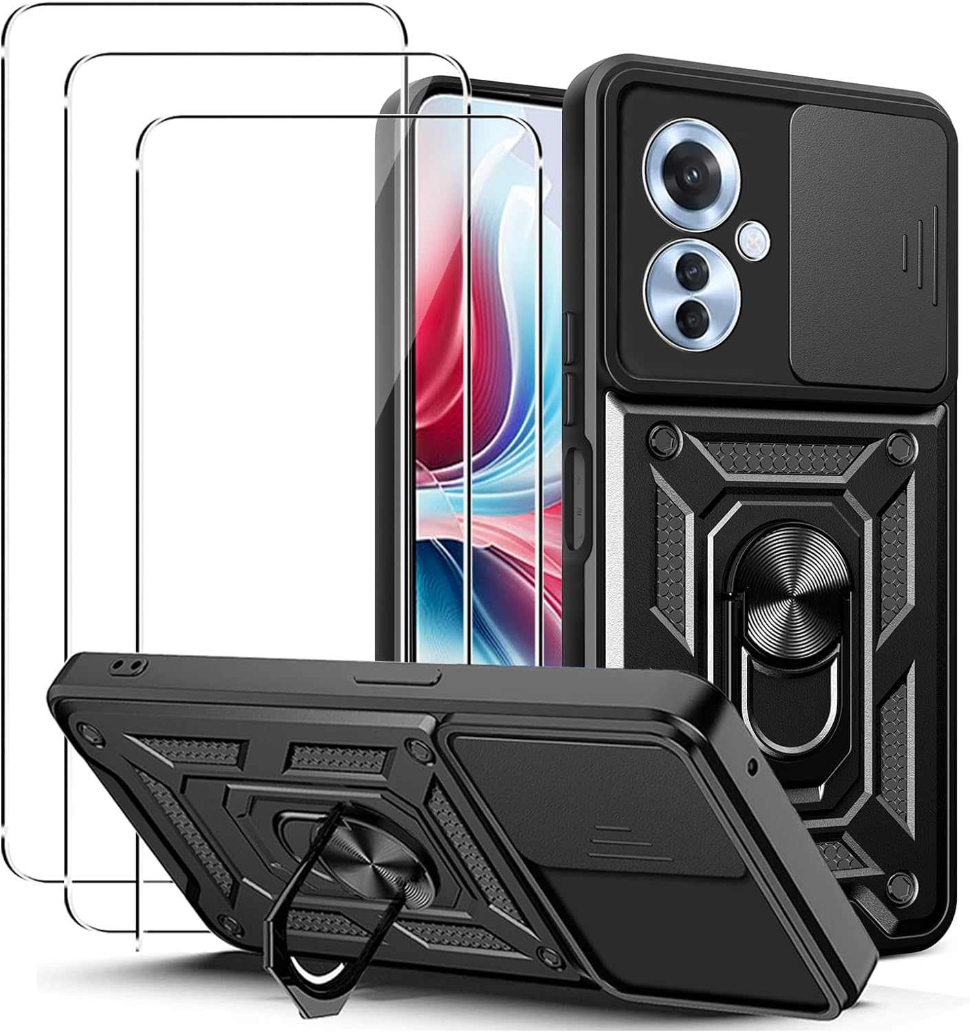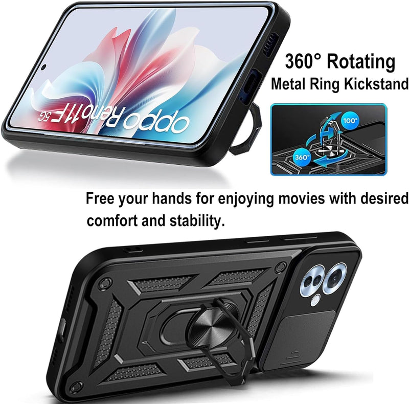 Oppo Reno 11 F 5G Case Shockproof Ring Stand Phone Camera Lens Cover & Screen Protector
