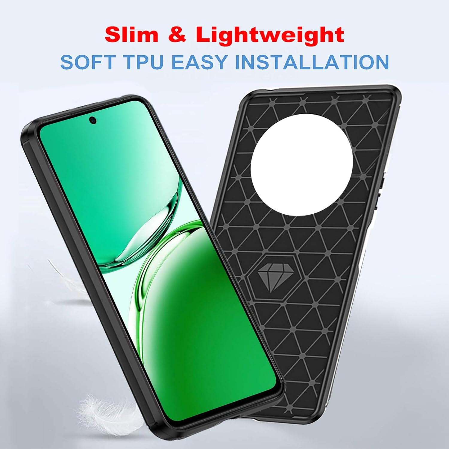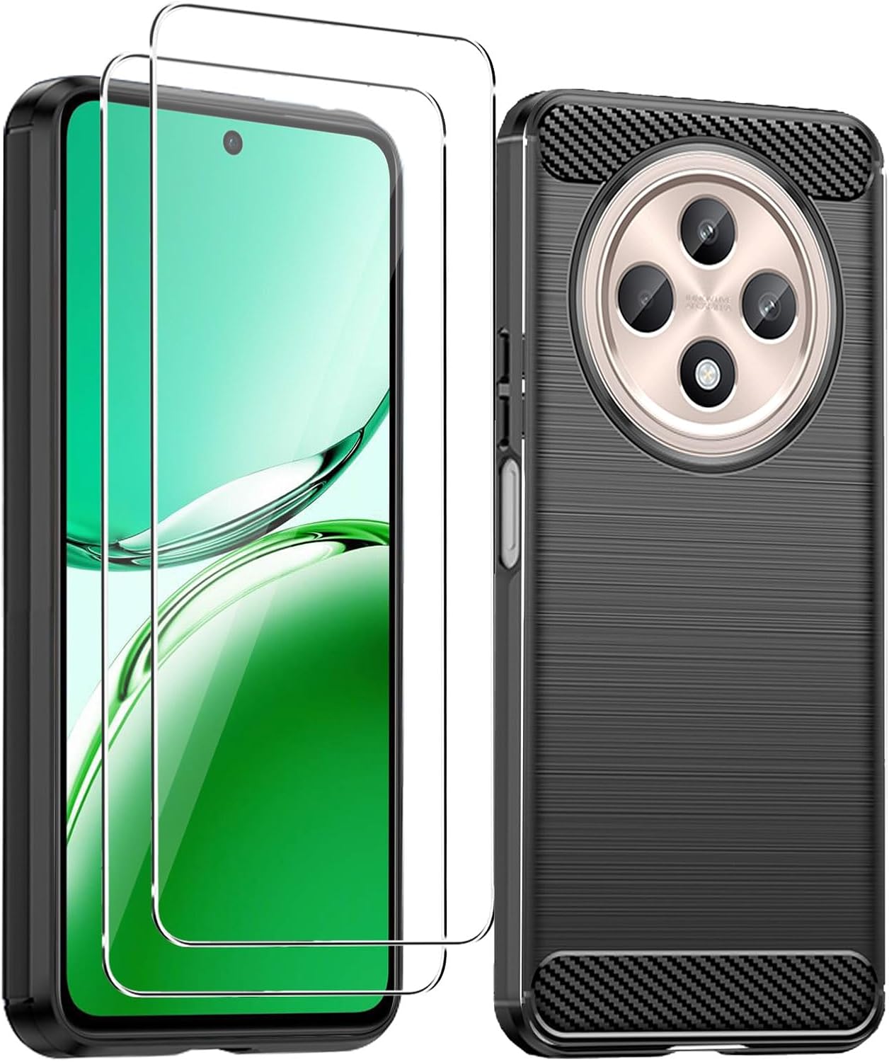 OPPO Reno 12 FS / F 5G Case Carbon Fibre Phone Cover + Screen Protector