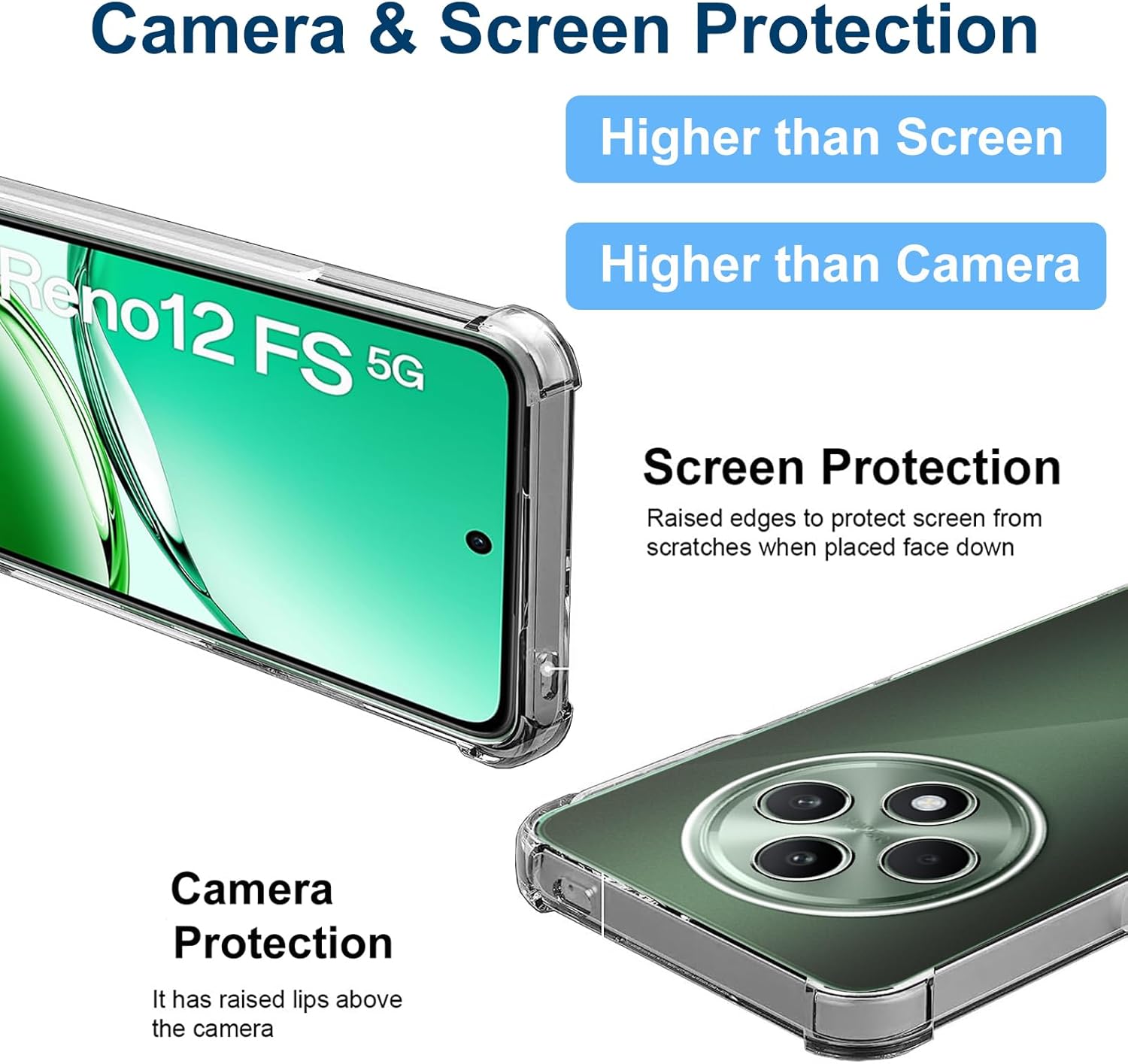 OPPO Reno 12 FS / F 5G Case Clear Phone Cover & Screen Protector
