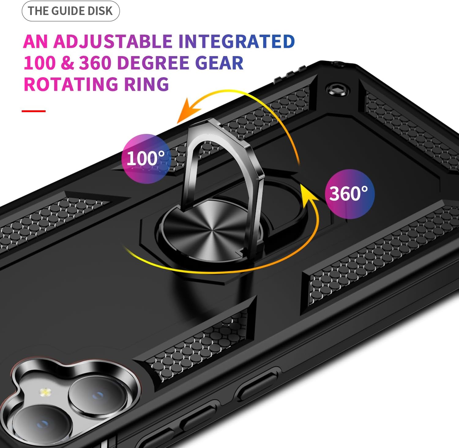 - ✅[360° Rotatable & Multifunctional Kickstand] :The Case contains a rotatable metal ring provides a more reliable way to grip your device. In addition, the ring can be used as a kickstand, which can be placed horizontally or vertically to watch movie, video chat and more. Also, the kickstand is Support Magnetic Car Mount, it's easy to directly adsorbed your phone on the magnetic car holder .