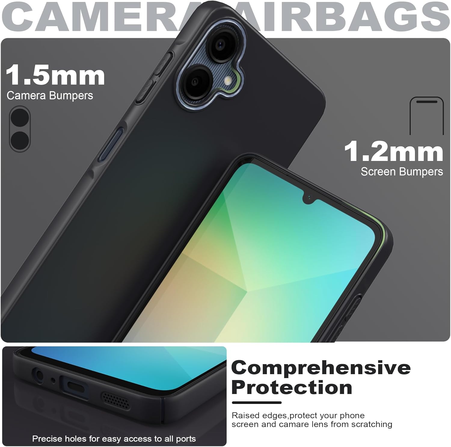 - ✅ Precise Cutouts : Matte Black Gel Case Has Cut-outs Accurately Crafted In Phone Case Which Provides Easy Access To All Ports, Volume Button, Auto Lock, Headphone And Charger Plug Pin Port, Sensors, Speakers And Camera Functions.