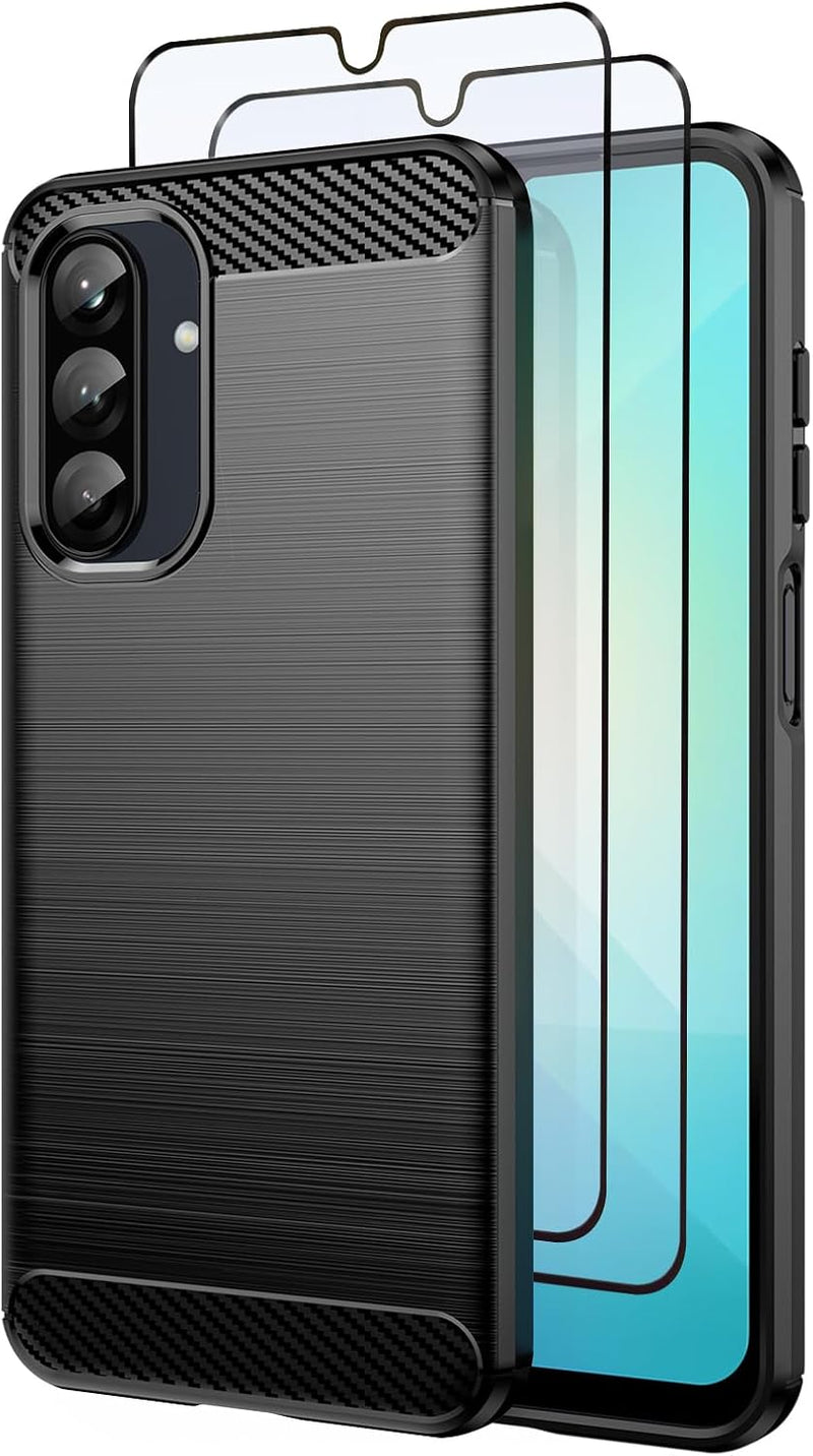 Samsung Galaxy A26 5G Case Carbon Fibre Phone Cover + Screen Protector