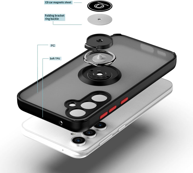 ✅ ·【Magnetic Rotated Ring Holder】 Integrated ring holder kickstand can be rotated 360° horizontally. It fits comfortably over your finger, to prevent the phone from breaking. Hands-free during watching/meeting/learning, etc. Metal magnetic sheet can be directly adsorbed to the magnetic car fixing frame.