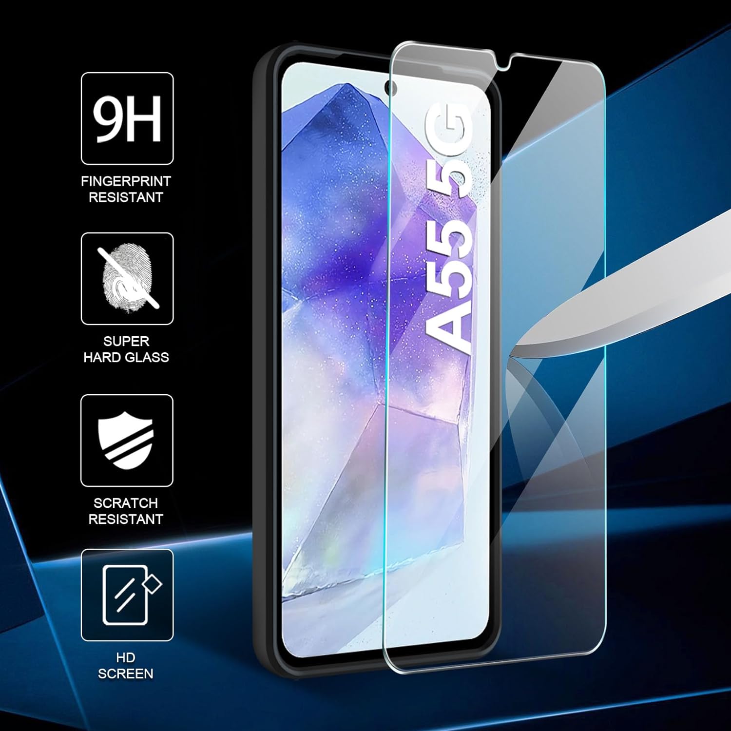 Samsung Galaxy A55 5G Case Shockproof Ring Stand Phone Camera Lens Cover & Screen Protector