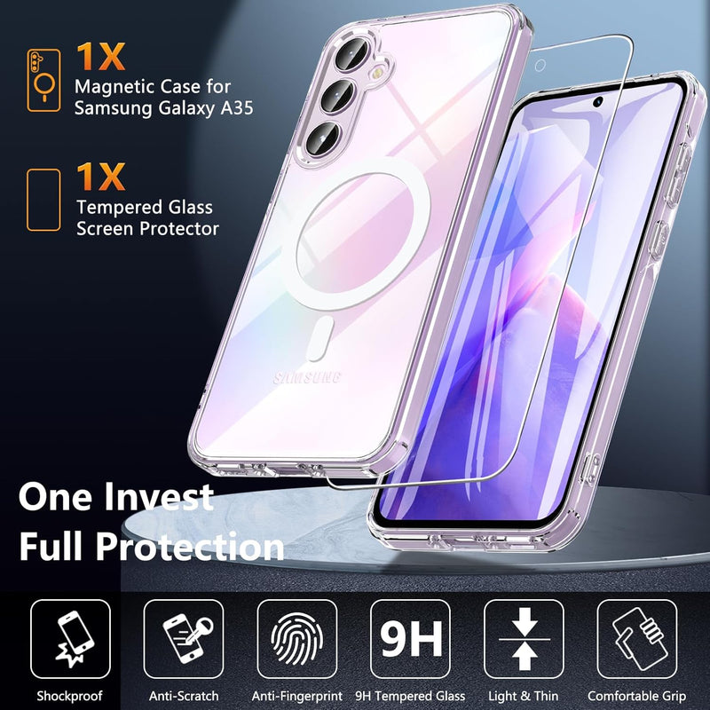 Samsung Galaxy A55 5G Clear Case Magsafe Phone Cover + Glass Screen Protector
