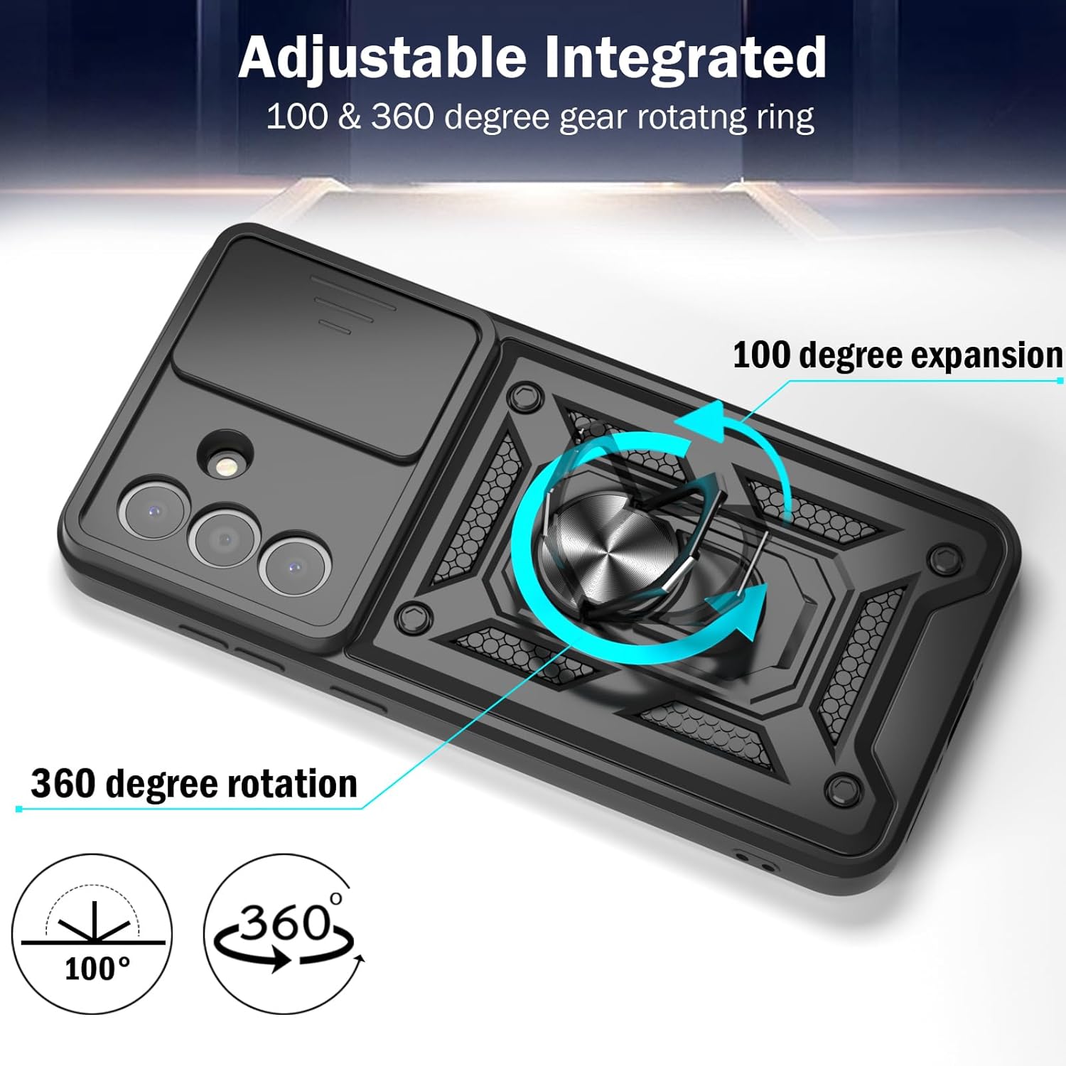 - ✅ 【Anti Slip & Integrated Stand Function 】- The durable high-grade material offer comfortable feeling and wonderful grip to prevent slip. Includes a built in kick stand for hands-free viewing, which is easy to open and retract, perfectly situated at an angle that allows for the optimum viewing position. 360 Degree Rotation Ring: cover with ring holder, the ring is 360 degree rotating swivels for secure grip and personalized comfort hands-free use and versatility.