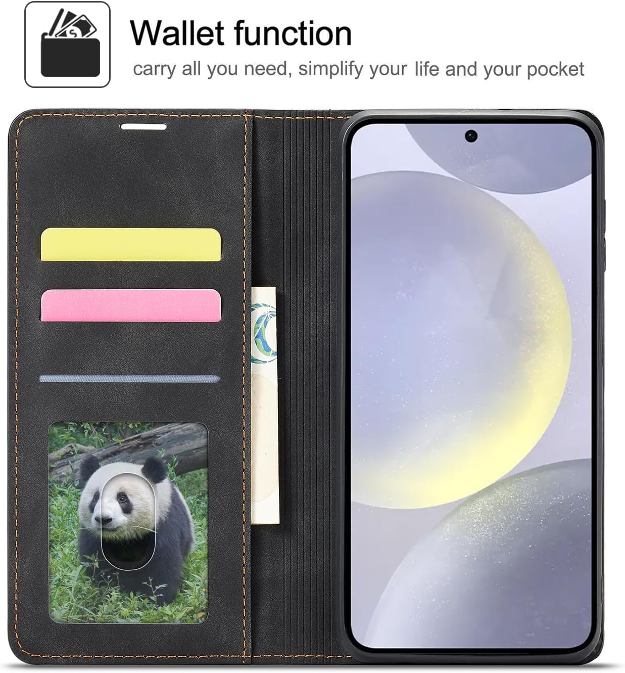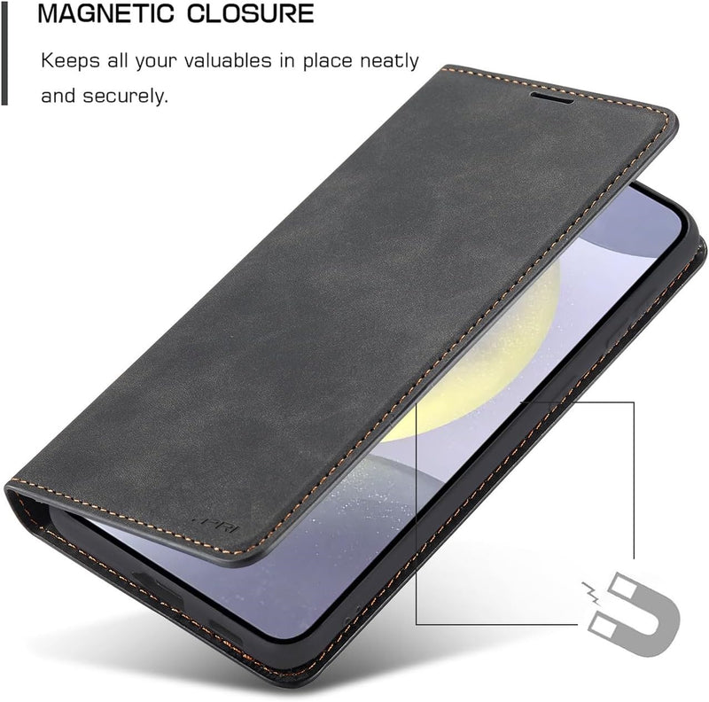 - Secure Magnetic Flip Closure: The magnetic closure design ensures your phone stays securely contained within the case. It offers a sleek, minimalist look without visible clasps or buckles, providing reliable protection without interfering with your credit cards.