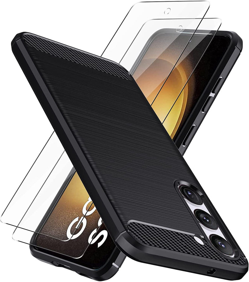Samsung Galaxy S23 Case Carbon Fibre Phone Cover & Glass Screen Protector