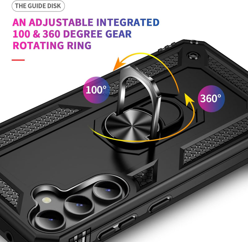 - ✅[360° Rotatable & Multifunctional Kickstand] :The Case contains a rotatable metal ring provides a more reliable way to grip your device. In addition, the ring can be used as a kickstand, which can be placed horizontally or vertically to watch movie, video chat and more. Also, the kickstand is Support Magnetic Car Mount, it's easy to directly adsorbed your phone on the magnetic car holder .
