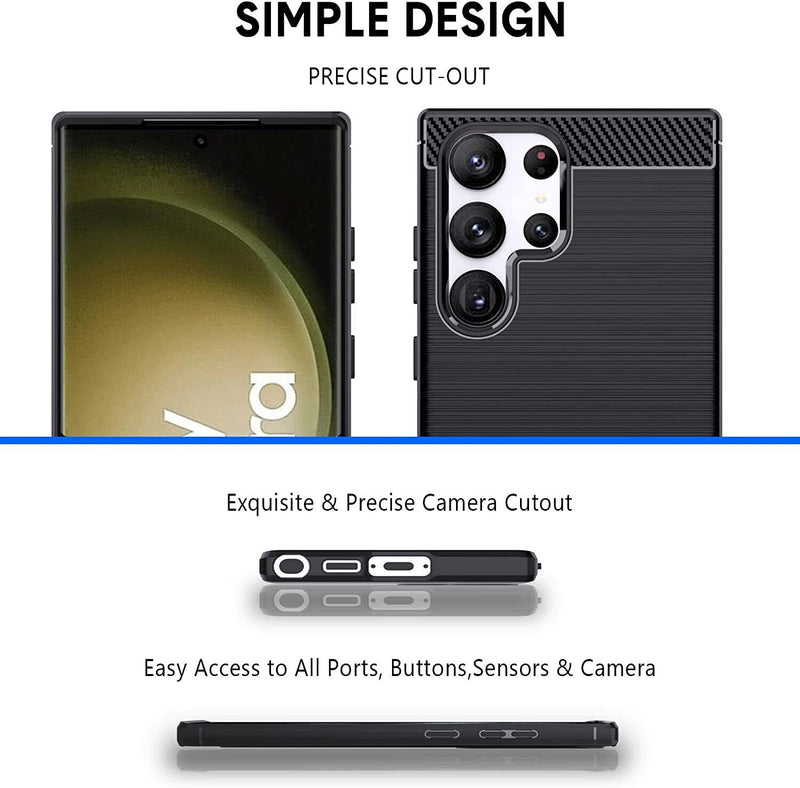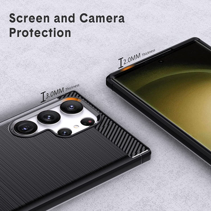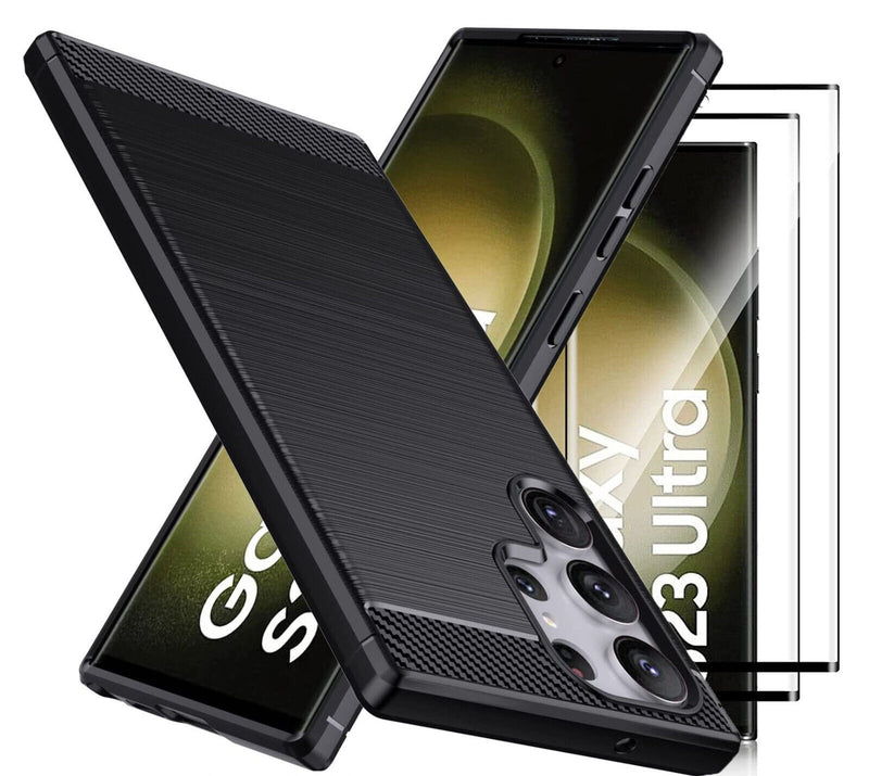 Samsung Galaxy S23 Ultra Case Carbon Phone Cover & Glass Screen Protector