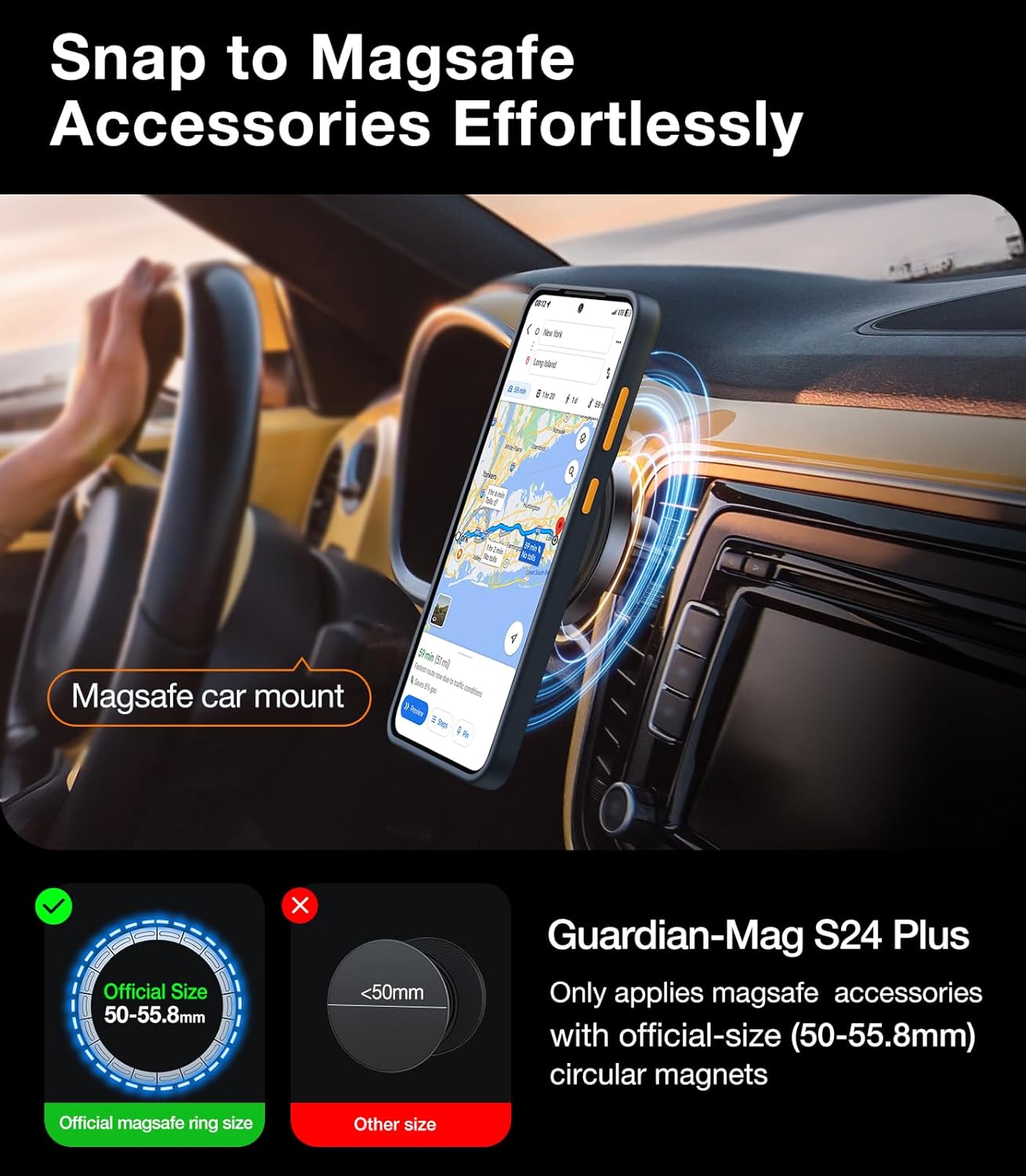 - ✅ [Super Magnetic Attraction]: This magnetic case accessories strengthens the magnetic connection and ensures auto-alignment with a built-in N52 magnet ring. The case strongly attach to the accessories like wallets, car mounts, and chargers.
