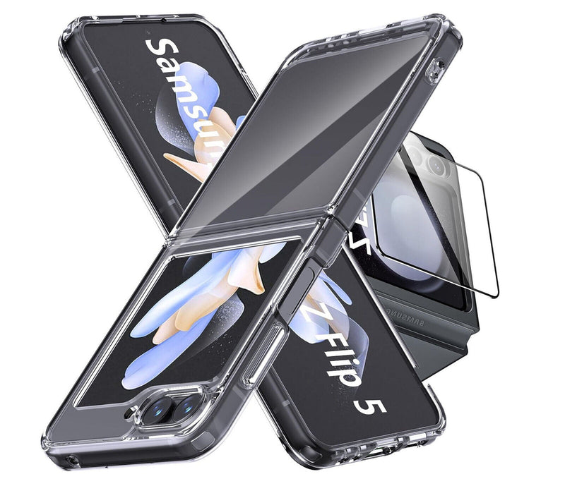 Samsung Galaxy Z Flip 5 Case Clear Shockproof Hard Cover & Glass Screen Protector