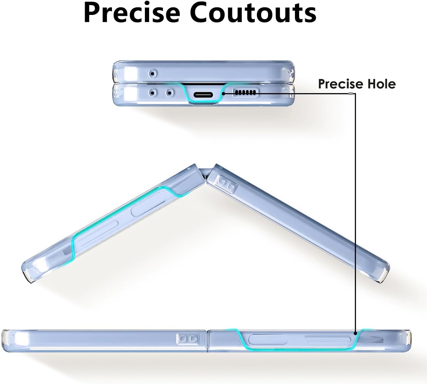 - [Stylish Design&Lightweight] This Z Flip 6 case is crystal clear design to keep the original look of the device. The inside of the edge of the phone is sprayed with mint lacquer that is not only elegant and beautiful, but also resistant to fading. (Note: This is a clear case, not a full-Mint Green case, only the inside of the edge of the phone is sprayed with Mint Green paint). Also,This case features an ultra-lightweight design that fits your phone perfectly and add minimum bulk to the phone.