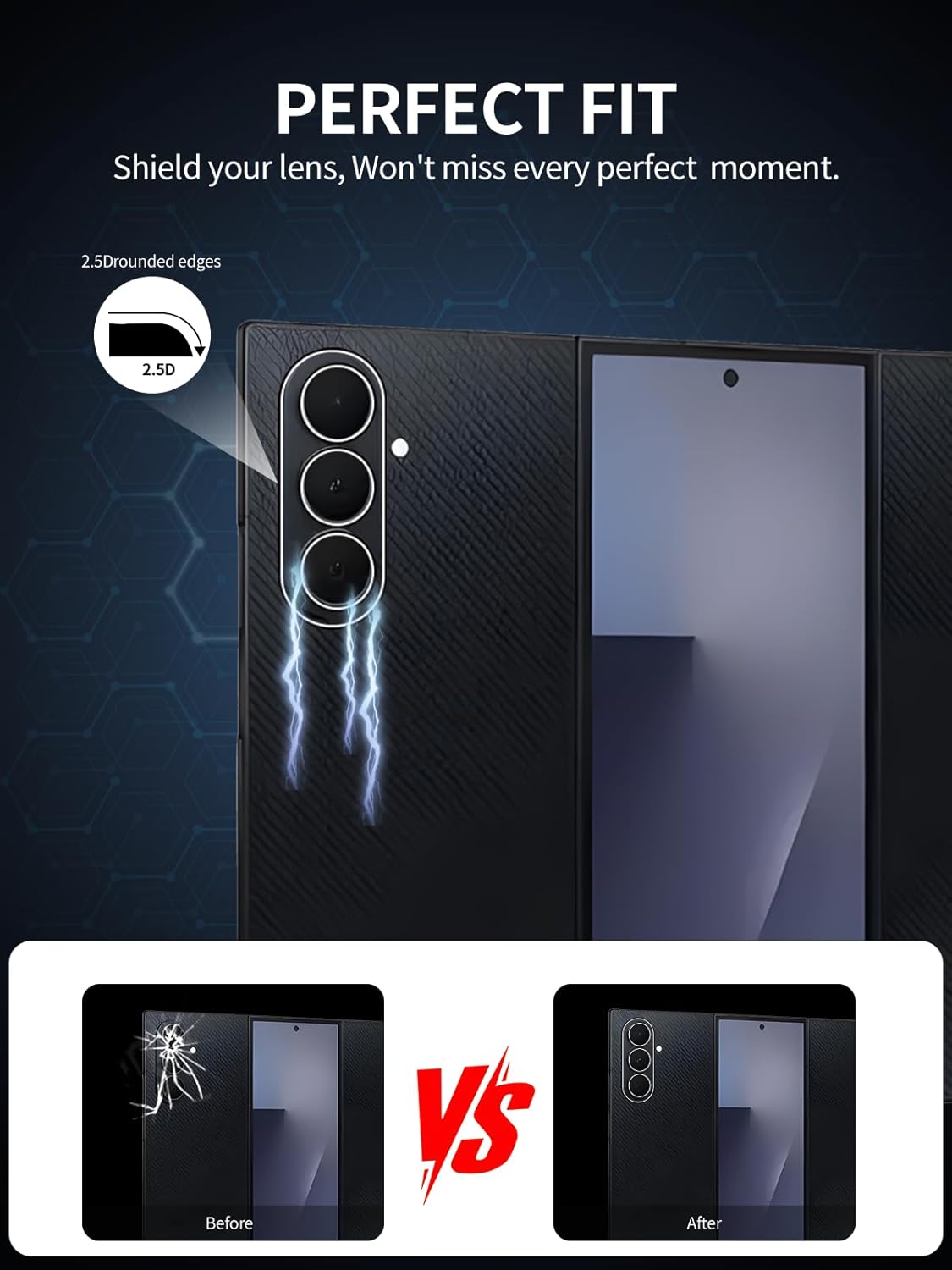 - CURVED-EDGE DESIGN:Excellent 2.5D cutting technique, perfectly fits your devices camera , all-round protection for your phone. Laser cut openings for the back facing camera. Made with case friendly in mind.