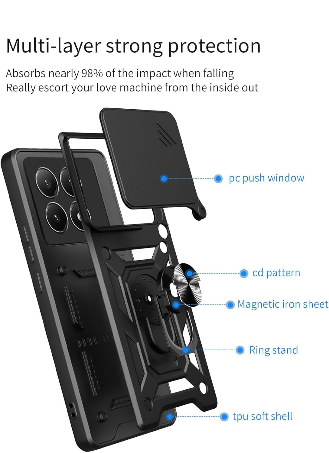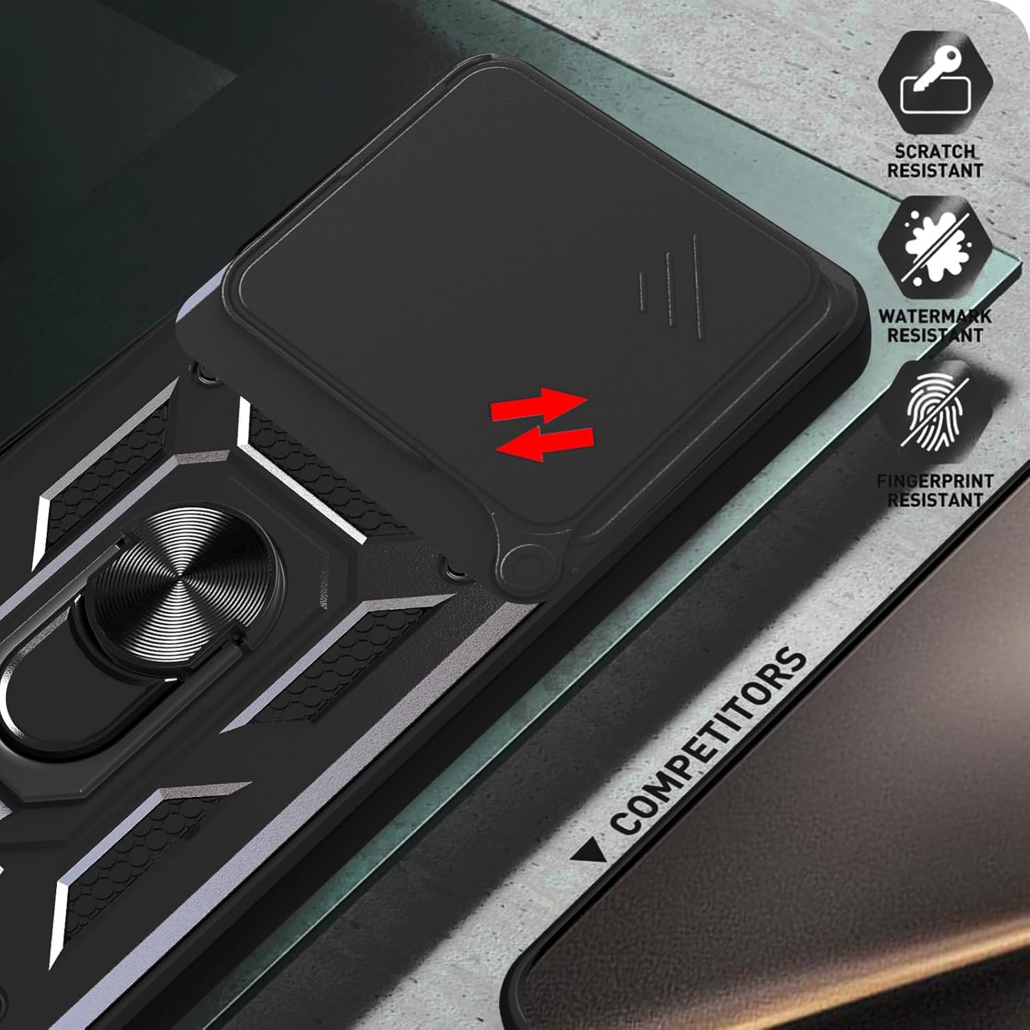 ✅【Unique Design】Sliding camera cover protects your phone lens from shattering, the raised design of camera aperture edges provide effective protection for the screen and camera.The design of back with unique texture provides great grip feeling,anti-scratch, anti-slip,shockproof,case gives your phone stronger protection.